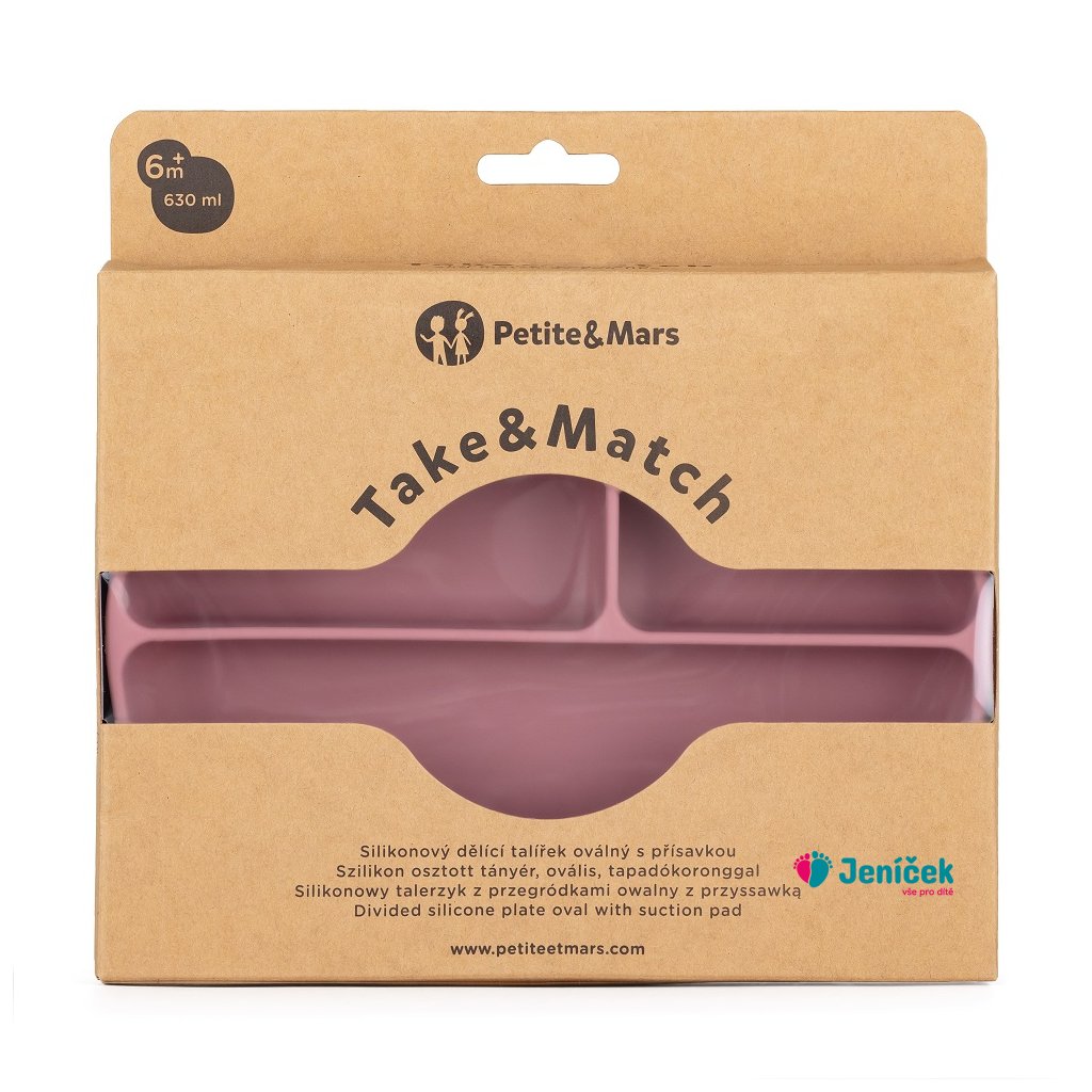 PETITE&MARS Talířek silikonový dělící oválný Take&Match Dusty Rose 6m+