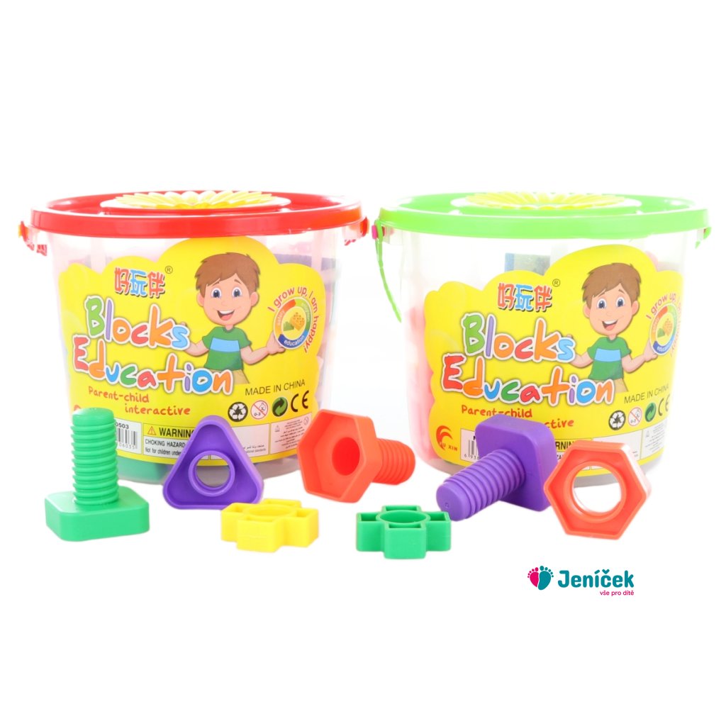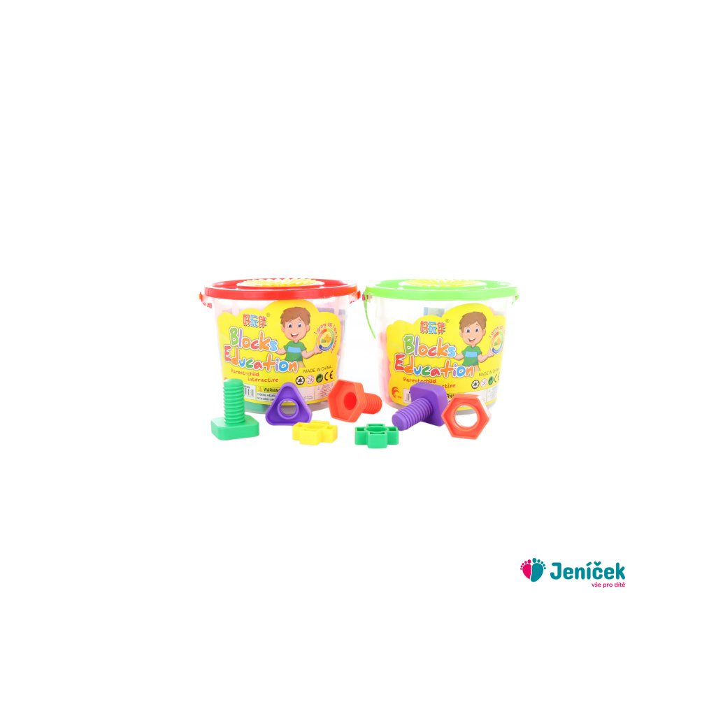 Šrouby a matice v kyblíku. Podporuje dětskou představivost a motoriku. Rozměr balení cca 18 x 18 x 14,5 cm. Materiál plast. Věk 3+