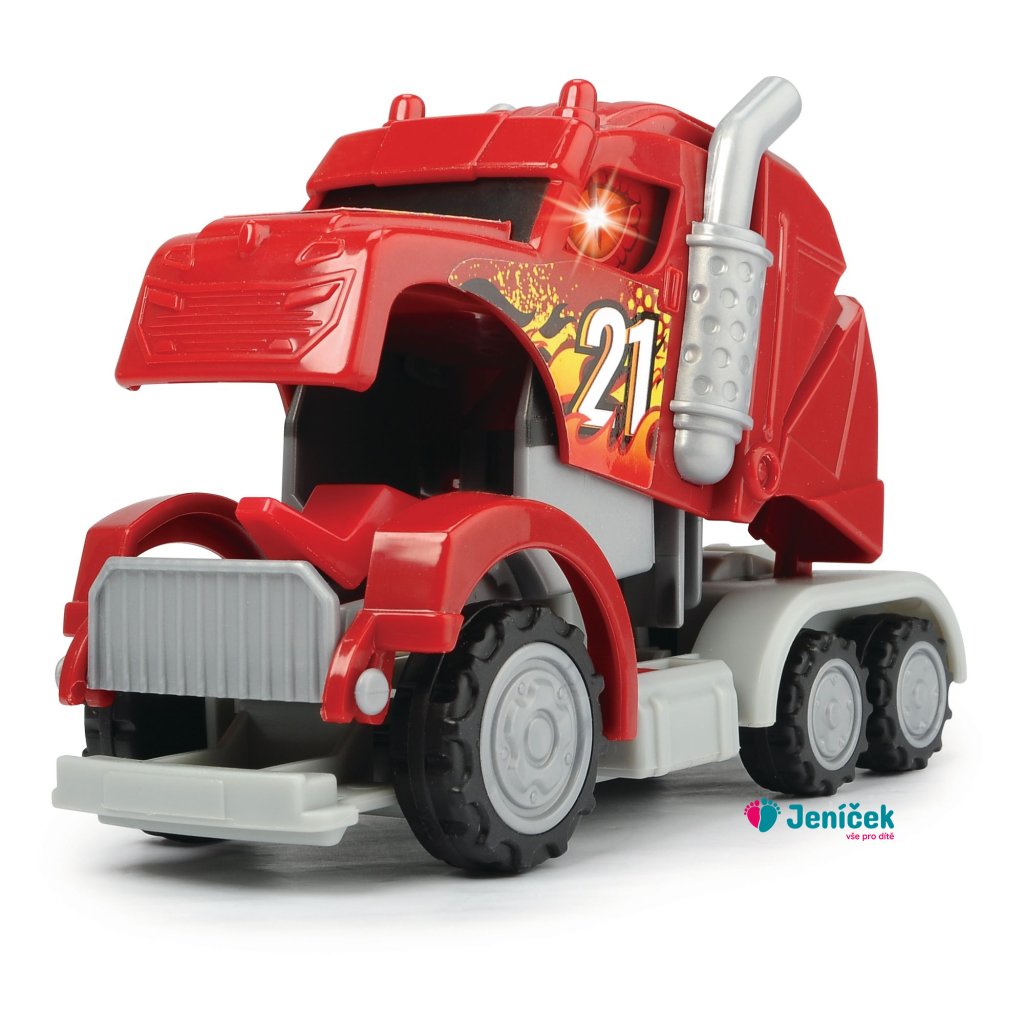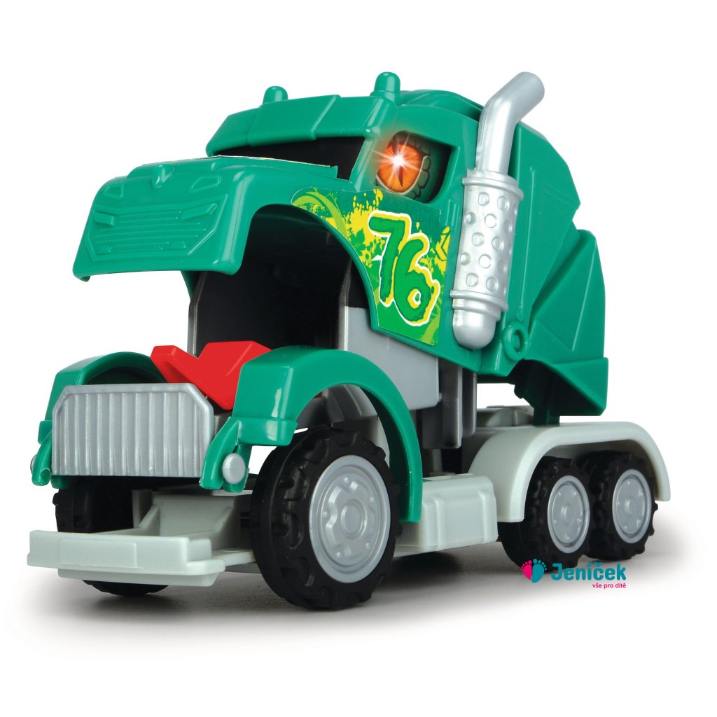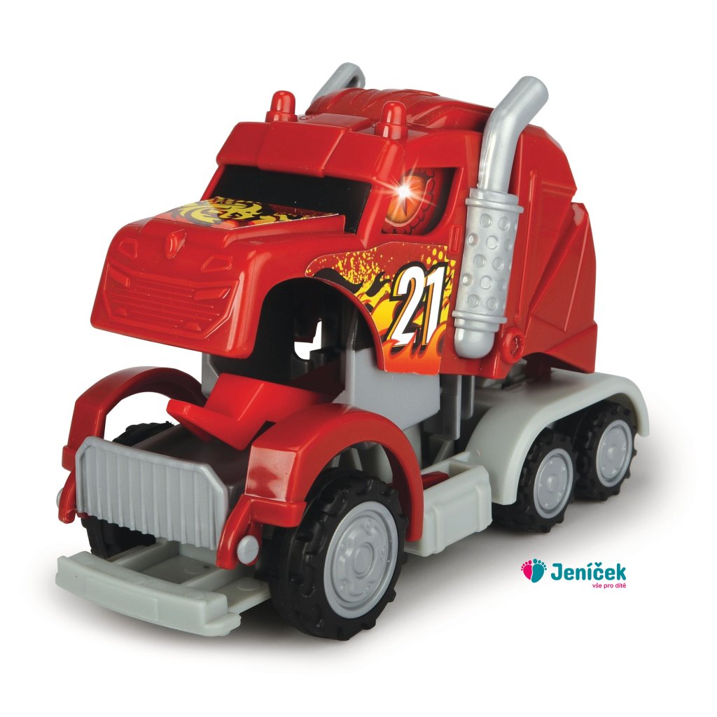 Kabina tahače se ve chvilce promění v draka, tahač na zpětný chod, se zvukovým efektem, s blikajícím světlem. 3 druhy - červený, modrý nebo zelený. Velikost 12,5 cm.