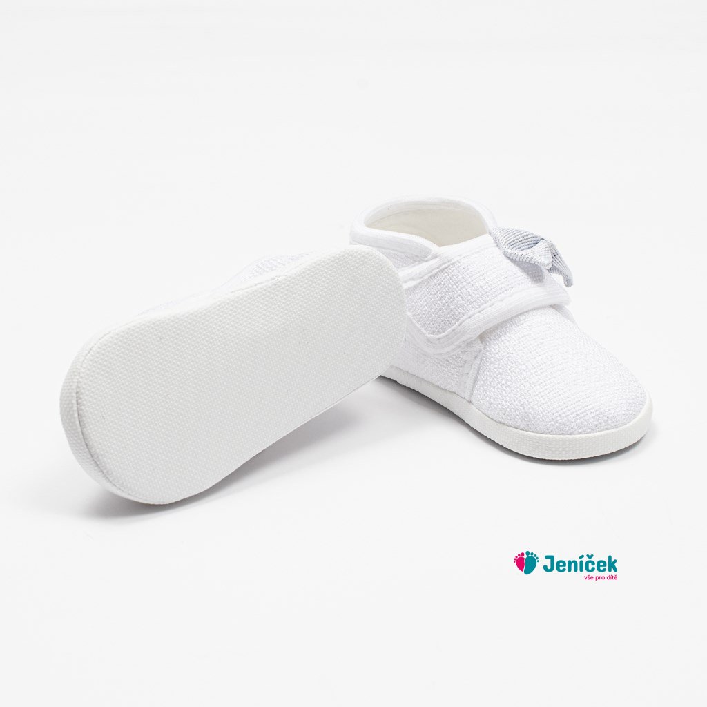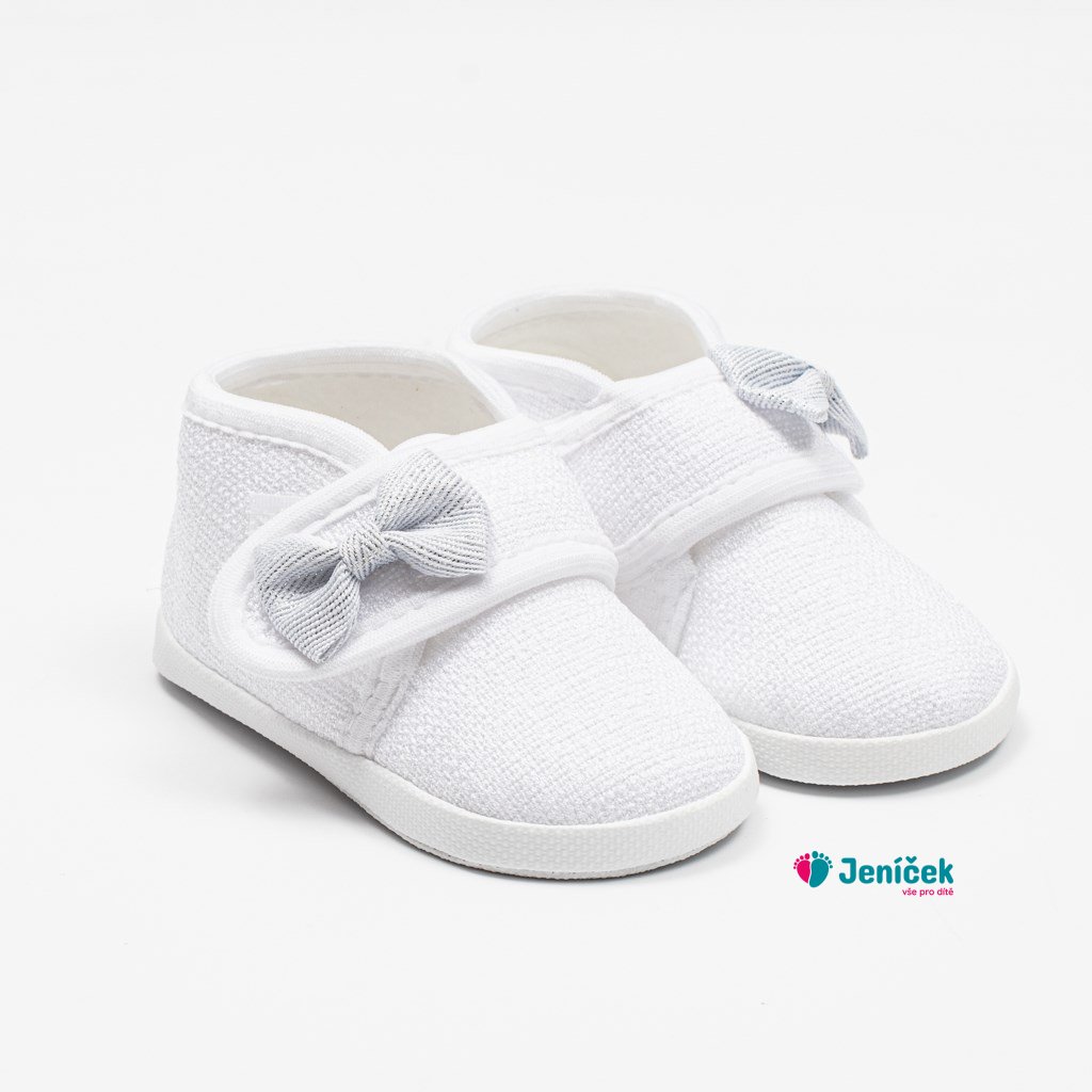 Kojenecké capáčky New Baby pro miminka. Krásné botičky s moderním vzhledem na suchý zip. Capáčky přiléhají k nožičce a mají široký vnitřek, což umožňuje volný pohyb prstů a svalů. Výrobek není určen k chůzi. Jsou velmi lehké s tenkou syntetickou podrážkou. Složení: tkanina typu len:100% polyester. Podrážka: syntetický materiál PVC bez BPA. Délka vnitřní stélky 13 cm. Určeno pro děti 12-18 měsíců. Dodáváné v praktické krabičce. Upozornění: pod textilní vložkou se někdy nachází papírová vložka, která drží tvar capáčky. Před prvním použitím odstraňte tuto papírovou vložku.Doplňkové parametry