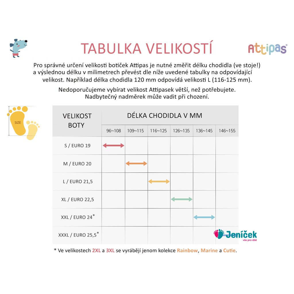 Obuv Attipas je vhodná pro děti od 6 měsíců do 3 let. Botičky jsou určeny jak pro děti, které teprve začínají chodit, tak i pro dobré chodce.