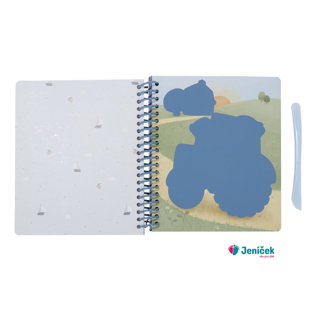 Originální knížka s krásnými ilustracemi dopravních prostředků obsahuje 10 stránek se stíracími obrázky a 8 stránek s omalovánkami. Součástí knížky je stírací pero a šablona s motivy dopravních prostředků a dalších motivů. S pomocí stíracího pera dítě objevuje krásné ilustrace, které jsou ukryté pod stírací vrstvou. Díky kroužkové vazbě knížka z pevného kartonu drží otevřená pro pohodlné kreslení. Rozměry: 18 x 16 x 1,5 cm Vhodné pro děti od 3 let.