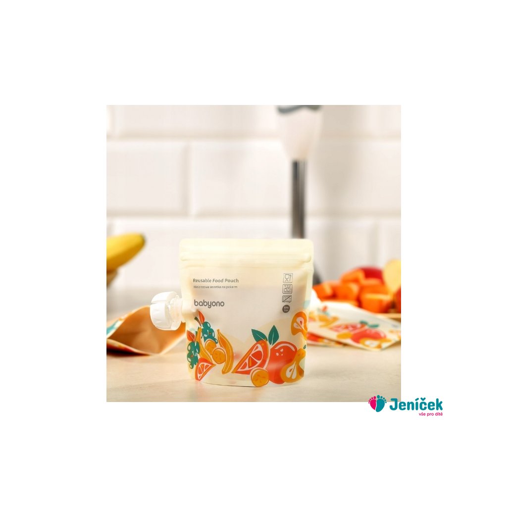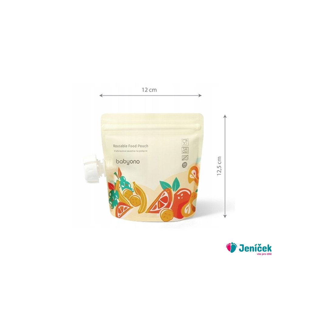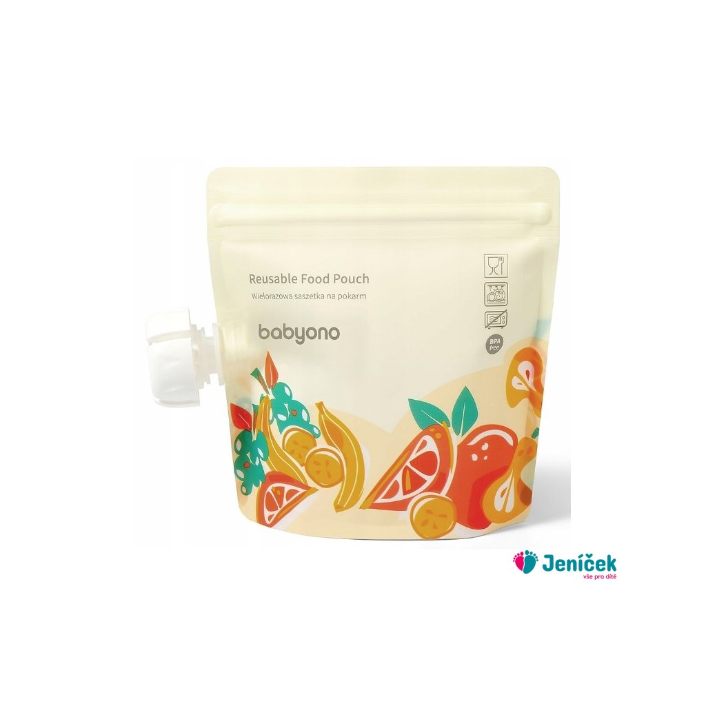 Sáček na dětskou výživu je vyroben z materiálů určených pro styk s potravinami. Neobsahuje škodlivé BPA. Vhodné i do myčky.