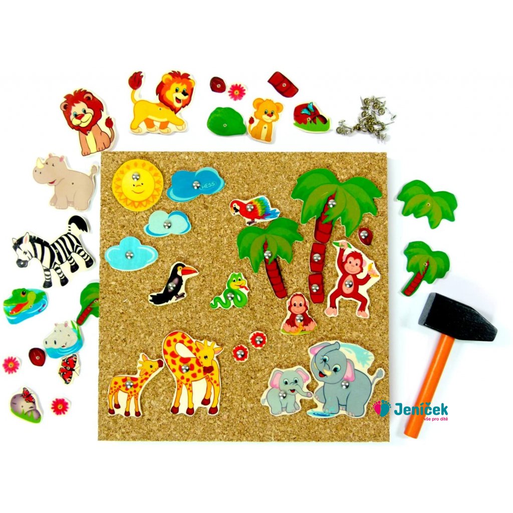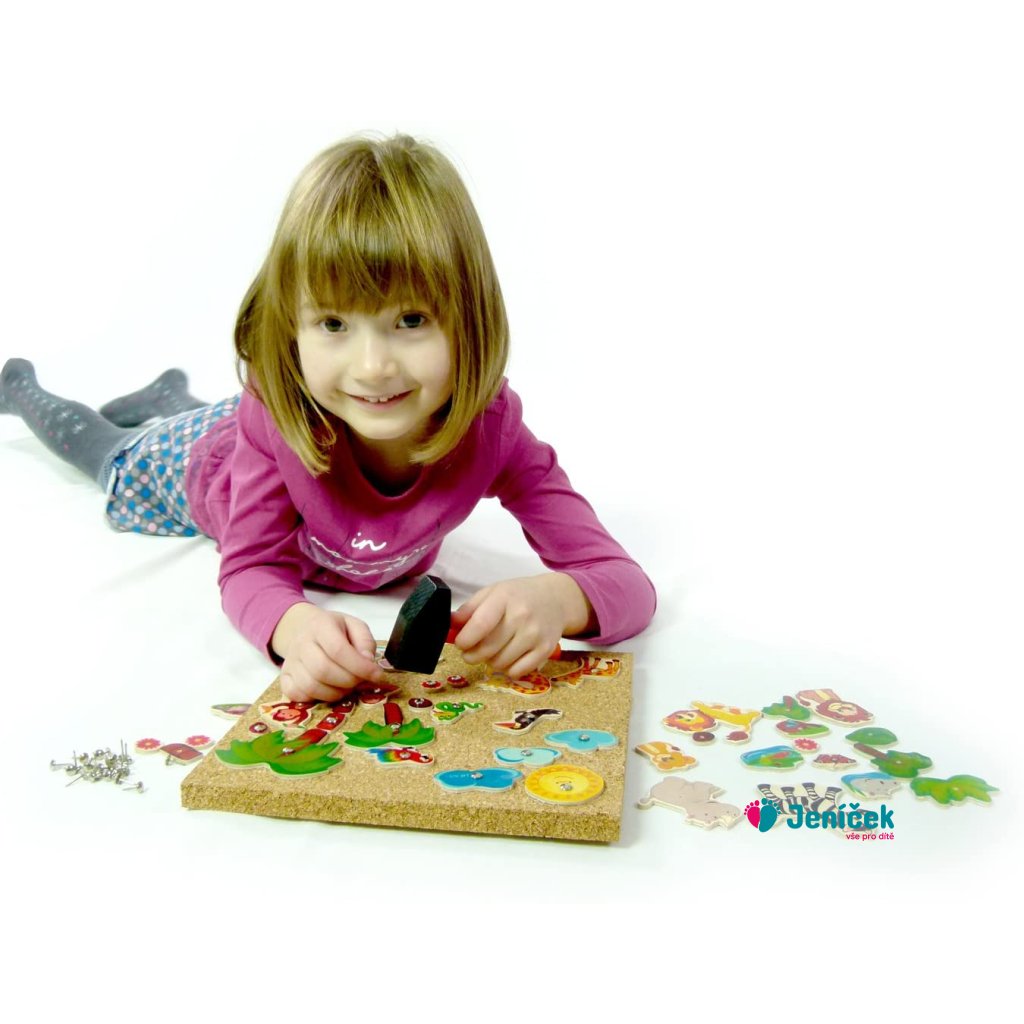 S touto zatloukací hrou se nebudete nudit. Použité barvy a tvary stimulují představivost. Tvořte rozmanité obrazy a cvičte jemnou motoriku Vašeho dítěte. Součástí sady jsou tvarové dílky z tištěné překližky, dřevěné kladívko, korková podložka a 50 ks hřebíčků s velkou půlkulatou hlavičkou. Hlavní vlastnosti: kompletní sada bezprostředně připravená ke hřevyrobeno eticky z ekologicky obhospodařovaných lesůpoužity ekologické a odolné barvy