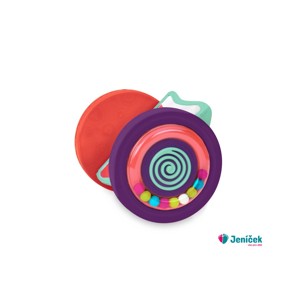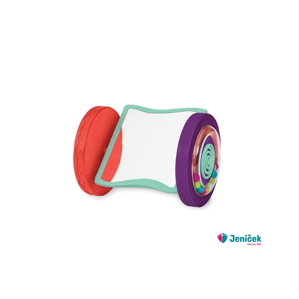 Válec při kutálení po po podlaze chrastí a zrcátko zůstává ve svislé poloze. Podněcuje dítě k lezení a rozvíjí tak jeho motorické dovednosti. Rozměry: 24×16,5×19 cm. Vhodné pro děti od narození do 2 let.