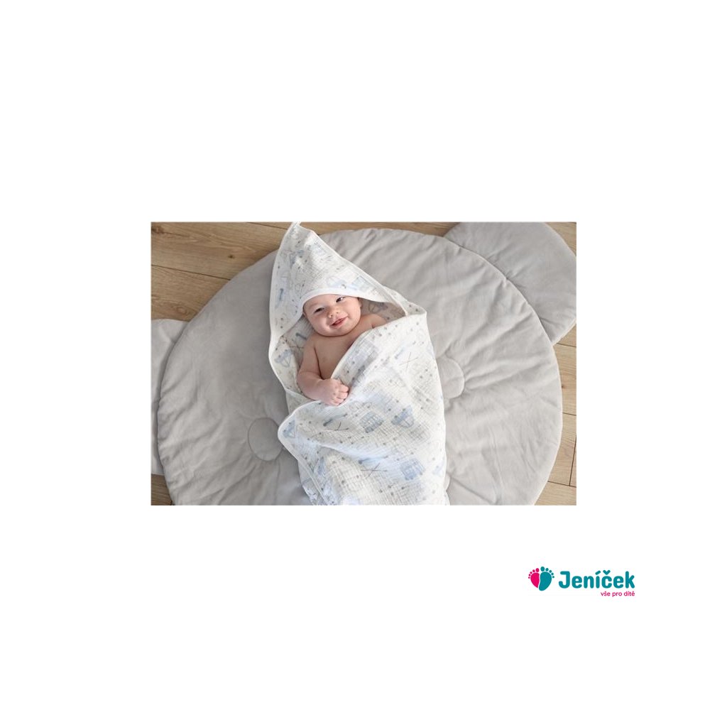 Krásná dětská mušelínová osuška české značky New Baby My Cars je vyrobena z měkkého, kvalitního a velmi savého materiálu a proto je ideální pro miminka i starší děti. Osuška krásně zahřeje po koupeli a praktická kapucka chrání hlavičku děťátka před nepříjemným chladem. Osuška dokonale absorbuje vlhkost, přičemž velmi rychle schne. Vyrobená ze 2 vrstev materiálu. Složení: 100% bavlna Rozměry: 90x90 cm. Mušelín je jedna z nejčistších, nejjednodušších a nejjemnějších tkanin na světě. Jemně tkaný prodyšný materiál je tak dokonalý, že si jej zamilují děti po celém světě. Lehká struktura umožňuje mušelínu „dýchat“ a zajišťuje dostatečnou cirkulaci vzduchu, čímž snižuje riziko přehřátí. Tato vlastnost pomáhá udržet Vaše dítě v pohodlí, bezpečí a rodiče v klidu. Mušelín je velmi odolný a to tak, že bez problémů zvládá opakované praní a postupem času je lehčí a jemnější. OEKO-TEX STANDARD 100.
