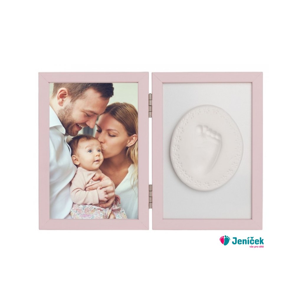 Sada na otisk miminka -dvojitý rámeček s modelínou pro otisk ručičky nebo nožičky, růžový