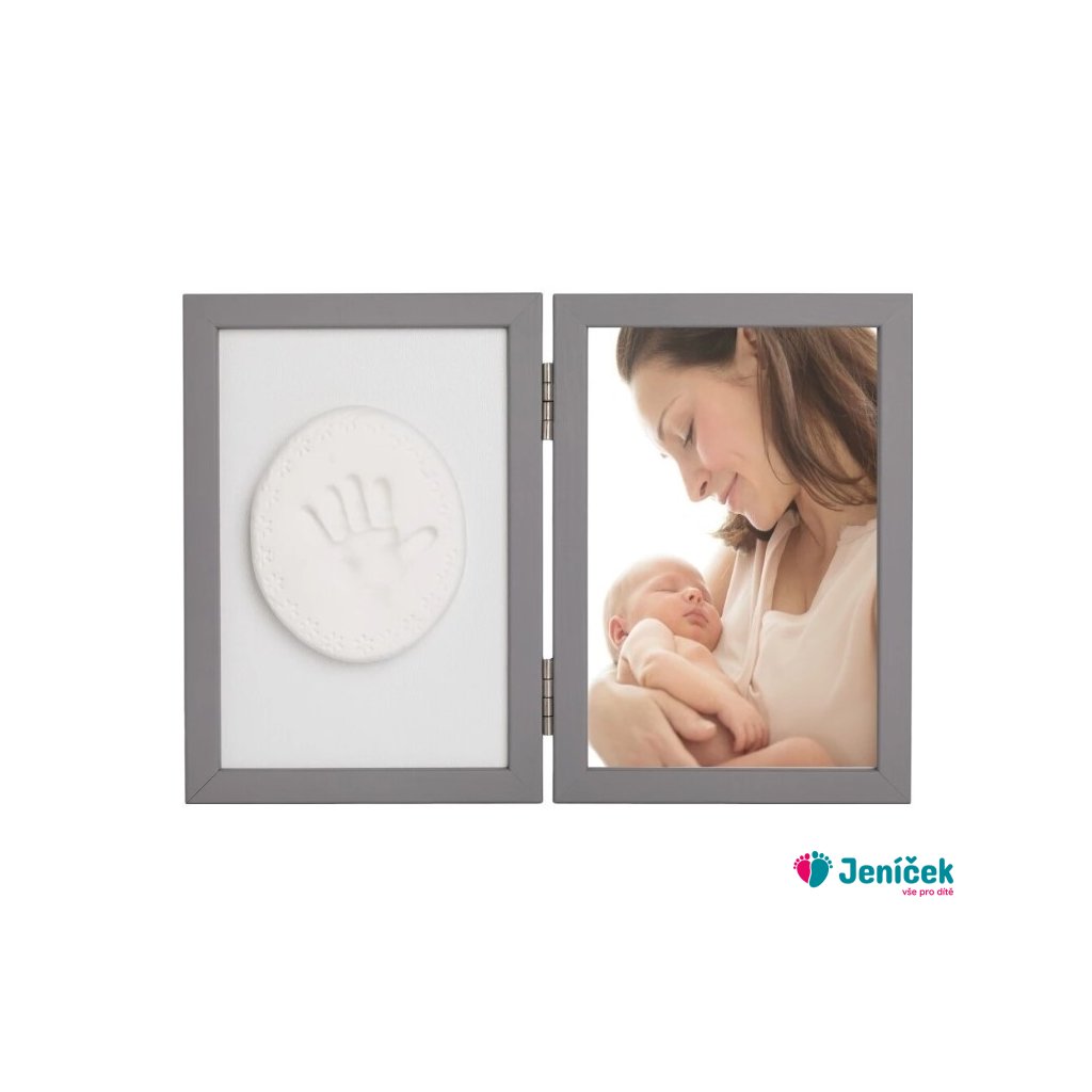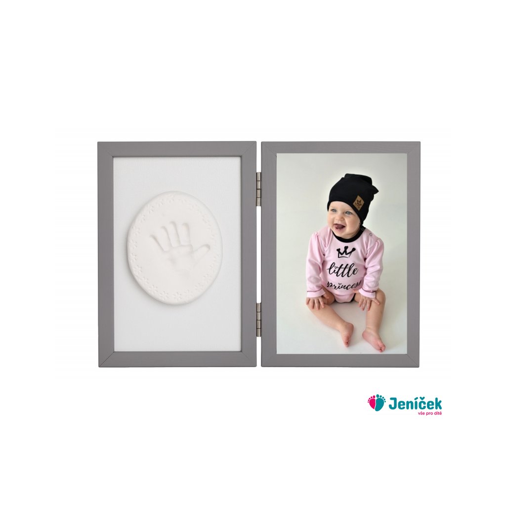 Sada na otisk miminka -dvojitý rámeček s modelínou pro otisk ručičky nebo nožičky, šedý