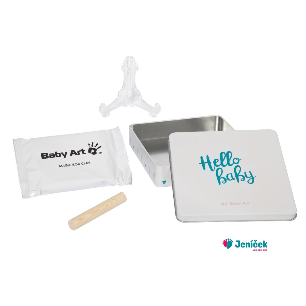Rámeček s víkem a stojánkem Baby Art Magic Box nabízí prostor pro otisk ručičky nebo nožičky Vašeho miminka. Vyrobte si krásnou dekoraci, která vám zároveň pomůže uchovat vzpomínky na krásné období po narození vašeho dítěte. Použití dle přiloženého návodu je jednoduché, rychlé a bez nepořádku. Balení obsahuje rámeček a vše, co potřebujete k výrobě otisku. Výrobek je dermatologicky testován a je pro vaše dítě 100% zdravotně nezávadný.