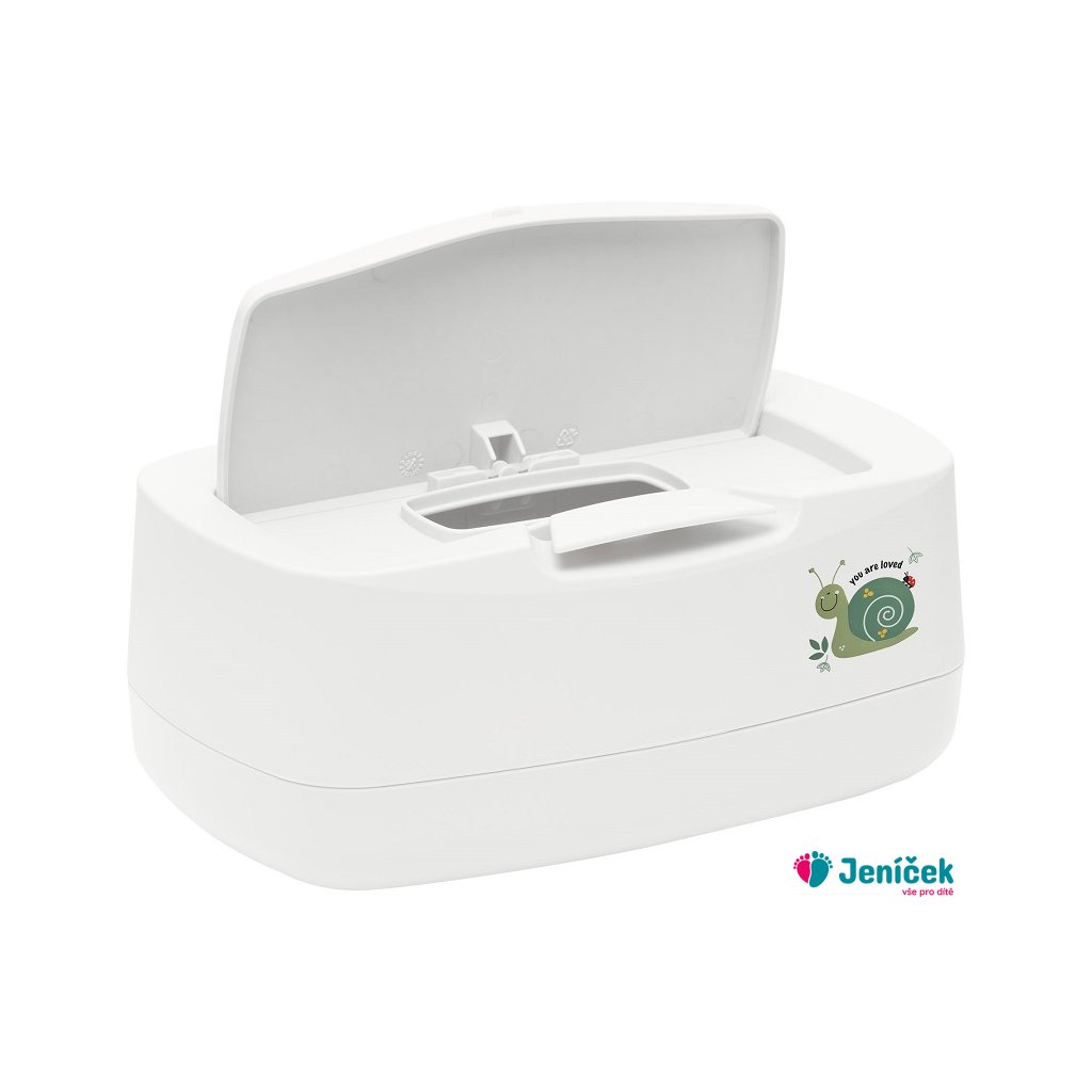 Univerzální box na vlhčené ubrousky v moderním designu s ochranou proti vyschnutí. Krásný doplněk na přebalovací komodu. Je lehce uzavíratelný, aby se předešlo vysychání ubrousků. Box lze otevřít jednou rukou. Speciální otevírání se dále postará, že další ubrousek budete moci bez námahy vytáhnout ven a ihned použít.