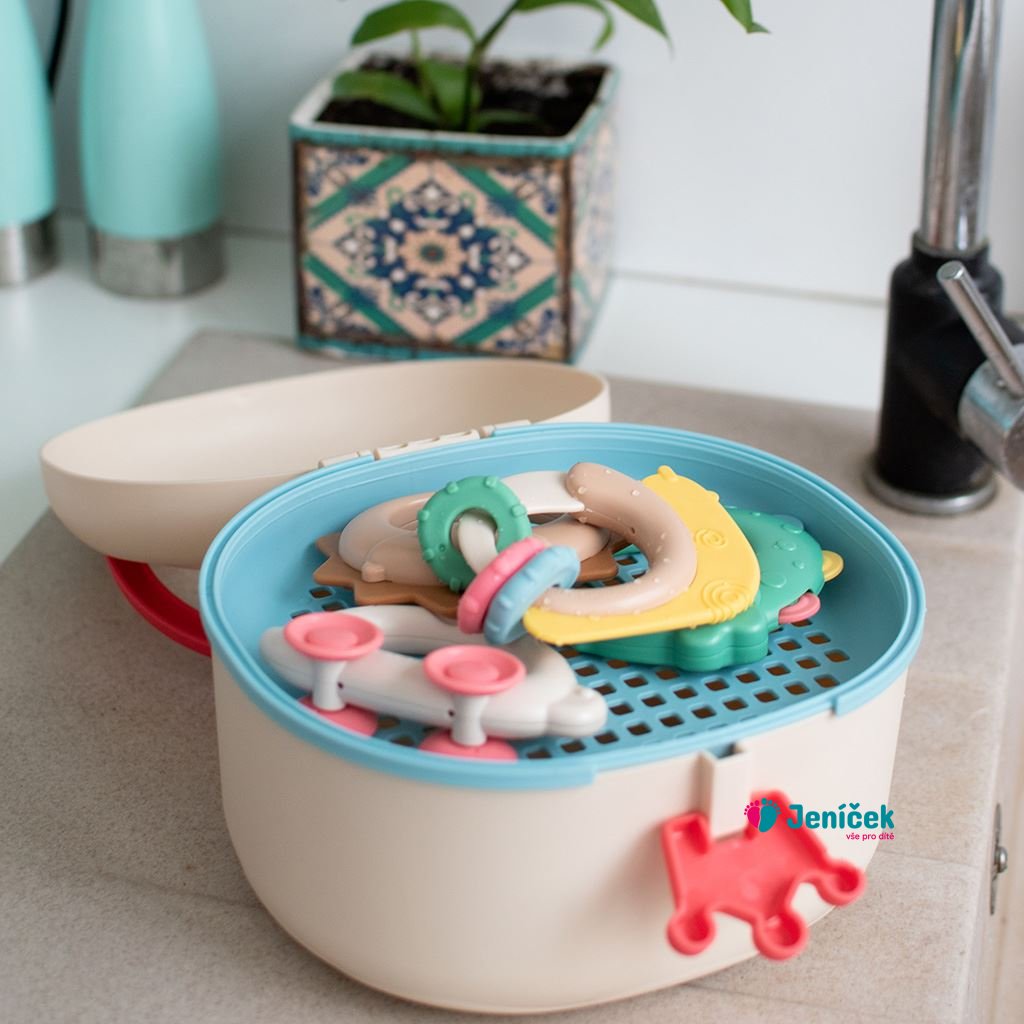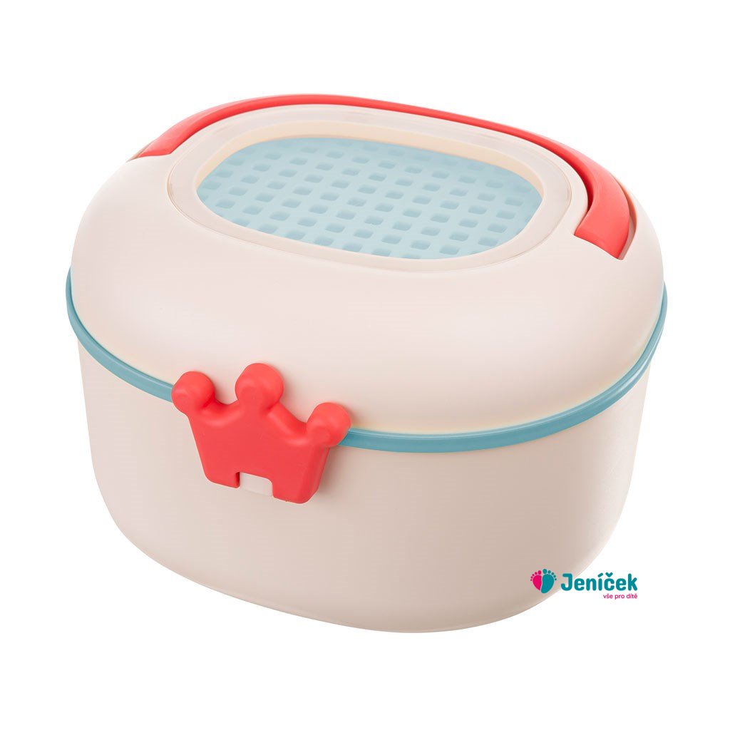 Ideální pro uložení chrastítek, kousátek a drobného příslušenství. Speciální praktický klip ve tvaru korunky zaručuje těsné uzavření.