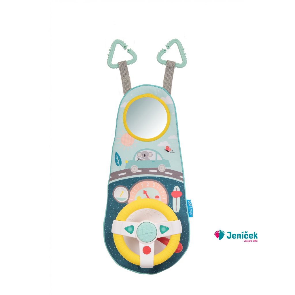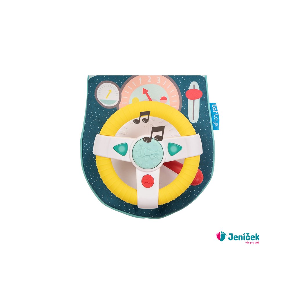 Ideální hračka pro malé řidiče do auta! Otáčení volantu a řadicí páky a mačkání tlačítek pomáhá vývoji jemné i hrubé motoriky dítěte. Světla a zvuky stimulují rozvoj smyslů dítěte. Hra na opravdové řízení podporuje dětskou představivost. Hrací pultík s volantem snadno zavěsíte za opěrku hlavy před dítě sedící v autosedačce po směru jízdy. Baterie 2xAA nejsou součástí. Vhodné pro děti od 12 měsíců.