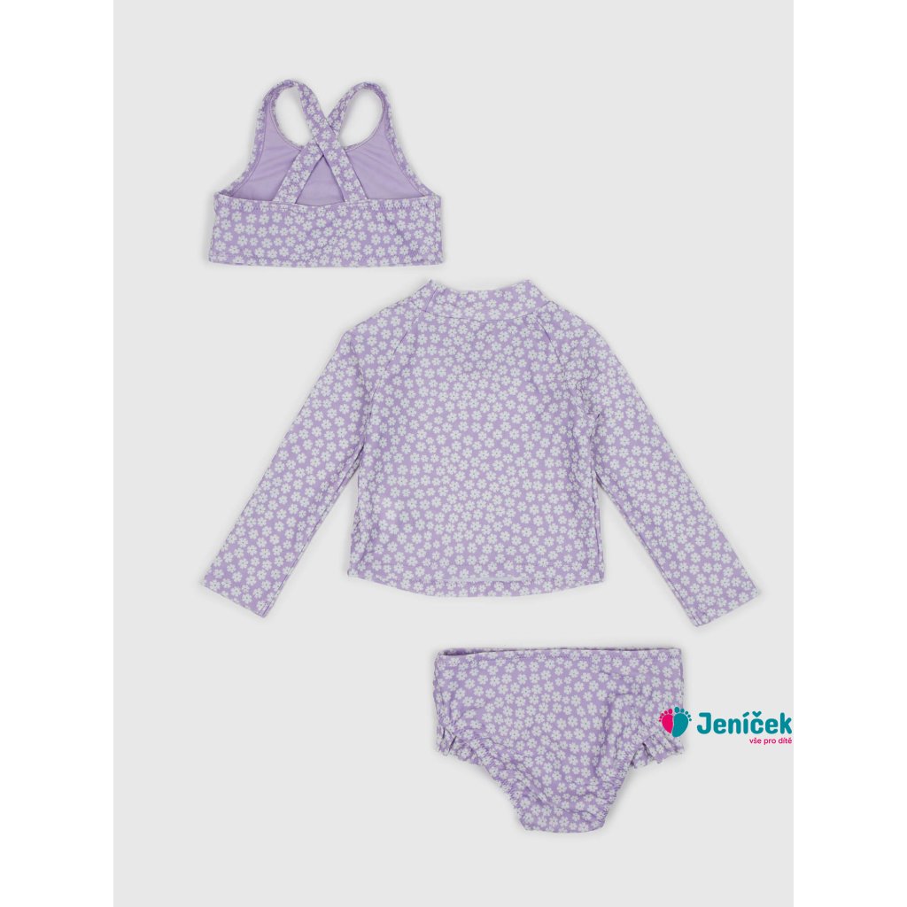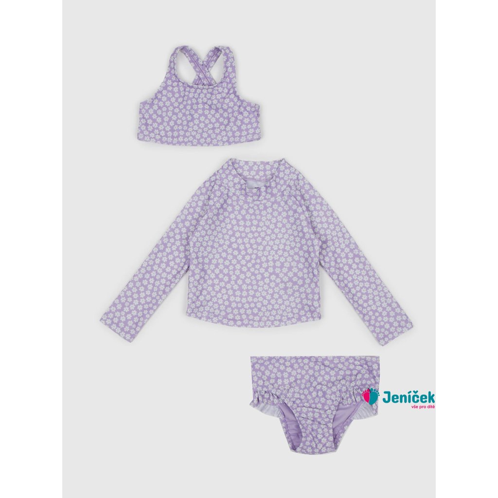 Dětské plavky 3 kusy. Drobný květinový vzor. Dvoudílné plavky. Tričko s dlouhým rukávem.Doplňkové parametry