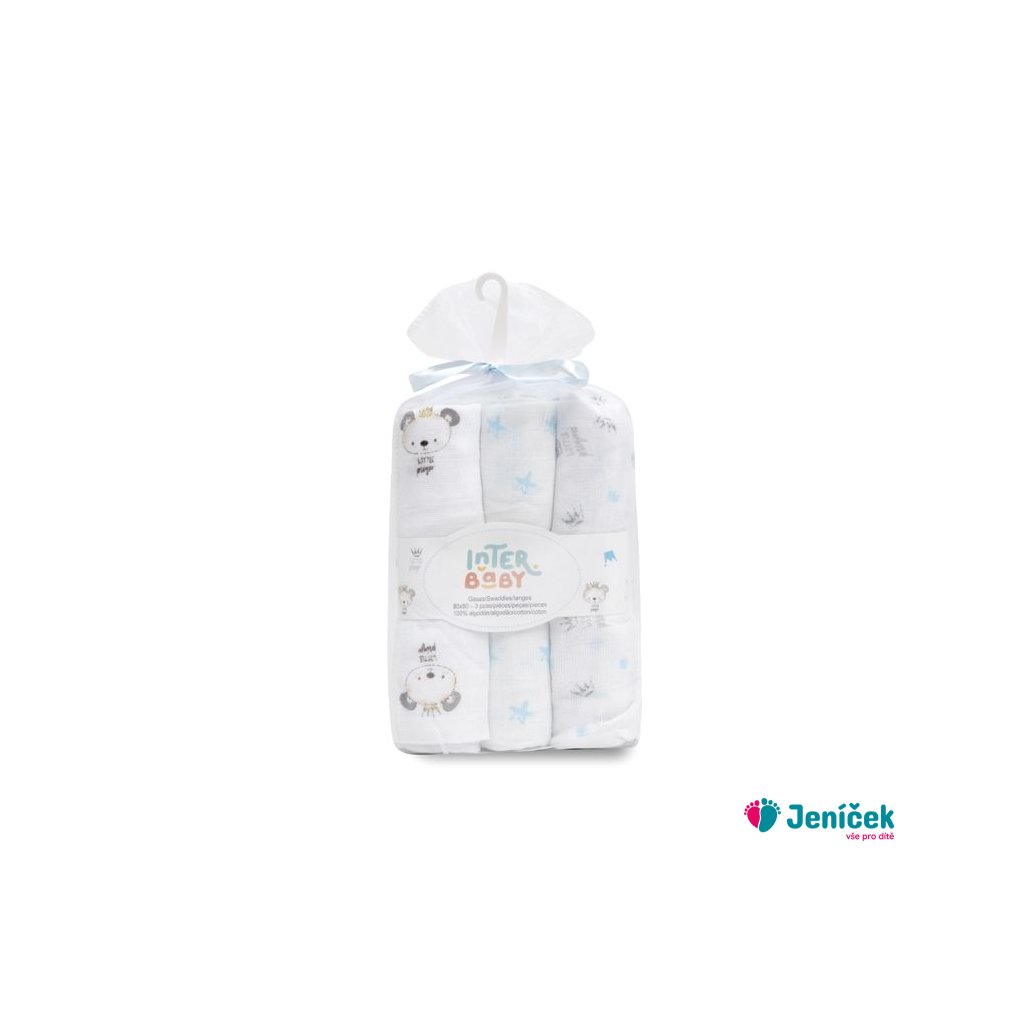 INTERBABY | PLENKA zvířátka 3 kusy 80x80 cm- bílo/modrá