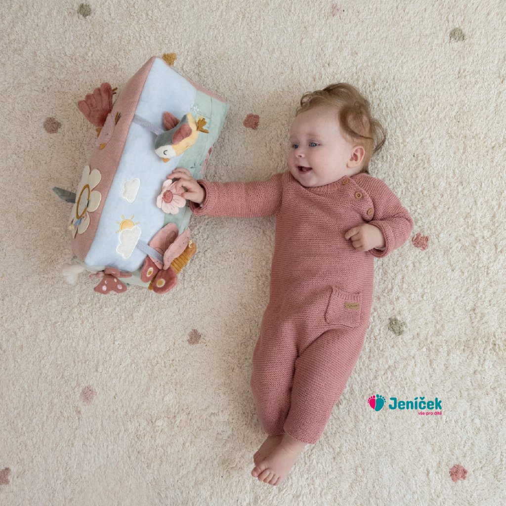 Polštářek z jemného, měkkého materiálu s krásnými motivy života na louce je speciálně navržený, aby podporoval hraní dítěte na bříšku. Hračky na polštářku i originální vyšívané aplikace lákají dítě ke zkoumání a pozorování. Každá strana polštářku je jiná, takže stačí polštářek otočit a nabídnout dítěti nové podněty k zabavení i rozvíjení jeho jednotlivých smyslů. Pro malého kojence, který tráví většinu dne i noci ležením na zádech, je důležité, aby trávil několikrát denně čas ležením na bříšku a takzvaným “pasením koníčků”. Poloha na bříšku přináší děťátku jiný pohled na svět a posiluje krční a zádové svaly, které mu později umožňují začít se přetáčet, lézt a sedět bez opory. Polštářek je součástí designové kolekce hraček Little Dutch Květiny a motýli. Rozměry: 35 x 19 x 20 cm Vhodné pro děti od narození.