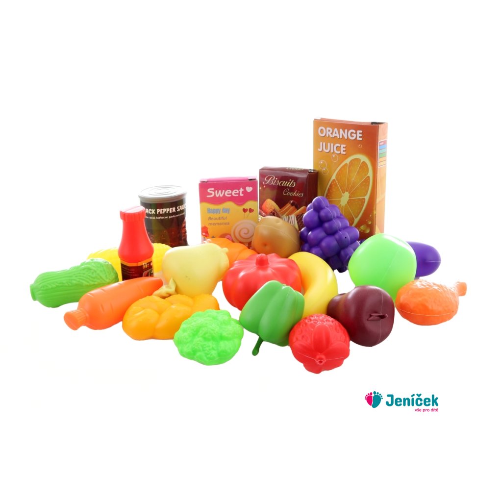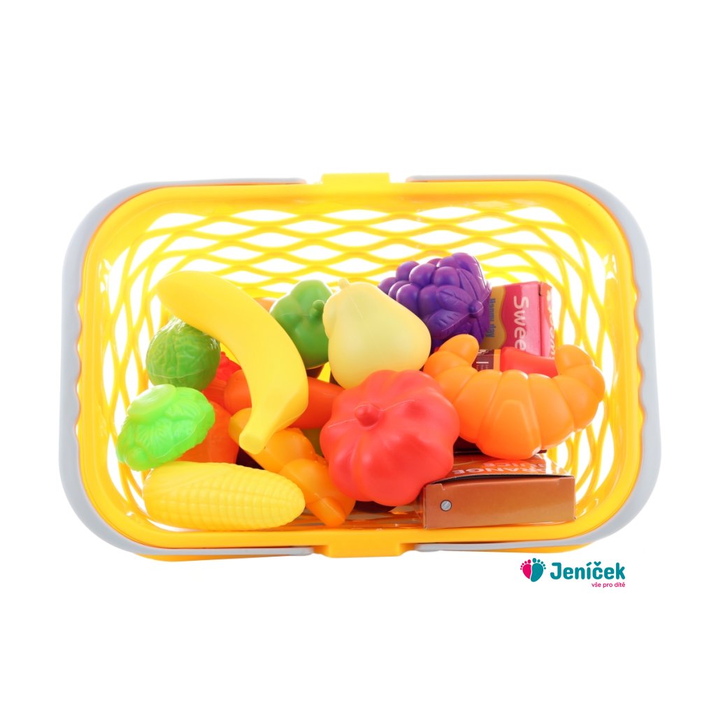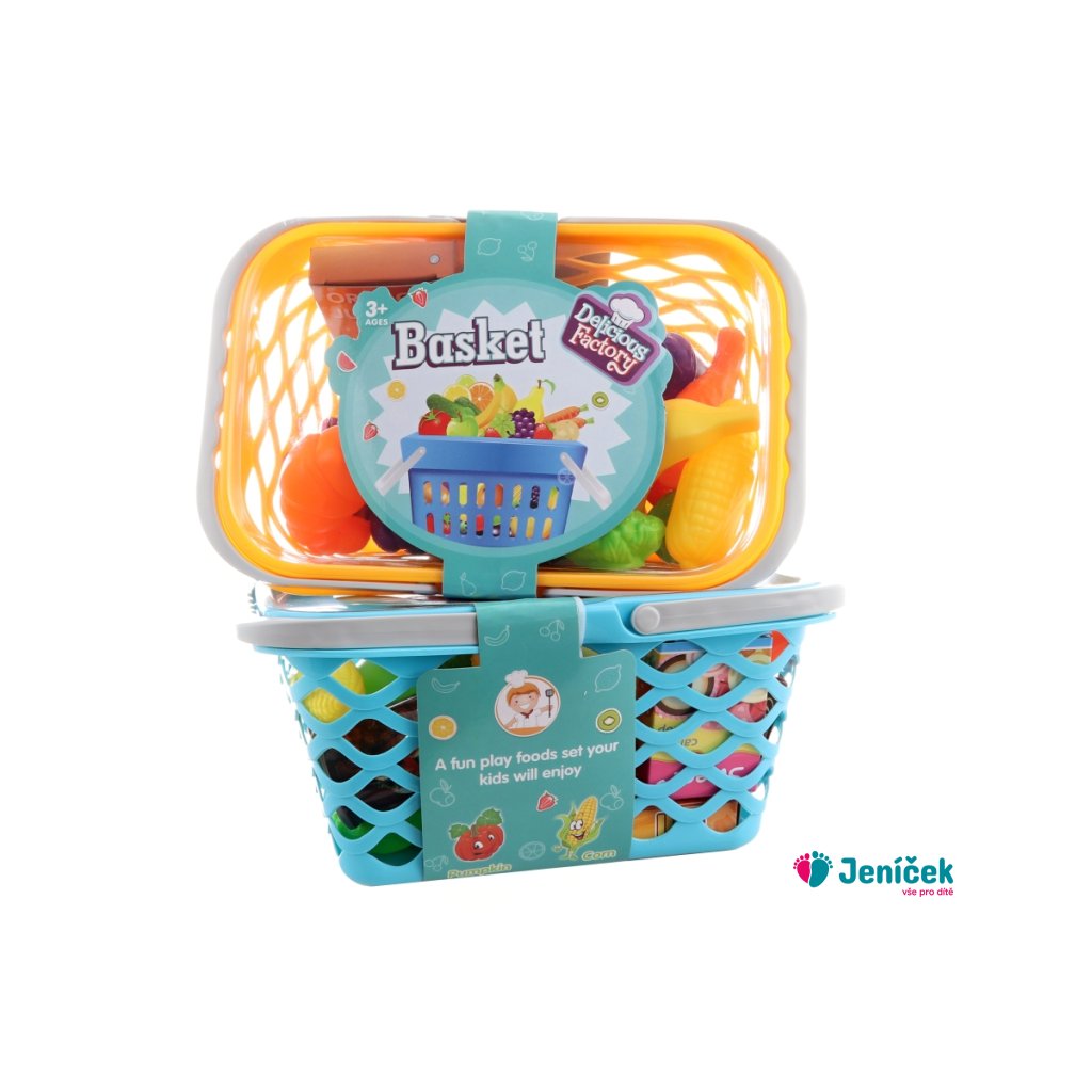 Plastová sada nákupního košíku s ovocem a zeleninou. Balení obsahuje košík a 25 kusů různých druhů ovoce a zeleniny. Rozměry balení 27x13x17 cm. Věk 3+