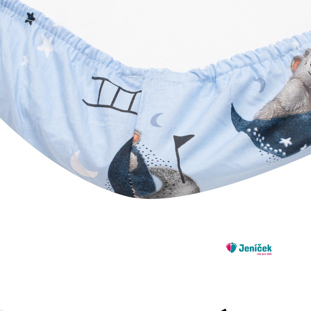Bavlněné prostěradlo New Baby Teddy bear in space je vyrobeno z hladké a na dotek příjemné bavlněné látky-tkanina. Krásny detský motív, polahodí detským očičkám. Všitá gumička zabraňuje sklouznutí z matrace, zaručuje správné napnutí prostěradla a umožňuje přizpůsobit se jakémukoli tvaru. Prostěradlo je vhodné pro matrace o rozměrech 35 × 75 cm. Prostěradlo je klasické bavlněné, které není elastické a proto má roměry 50x80 cm, aby krásně sedělo na celé matraci i ze spodní strany.