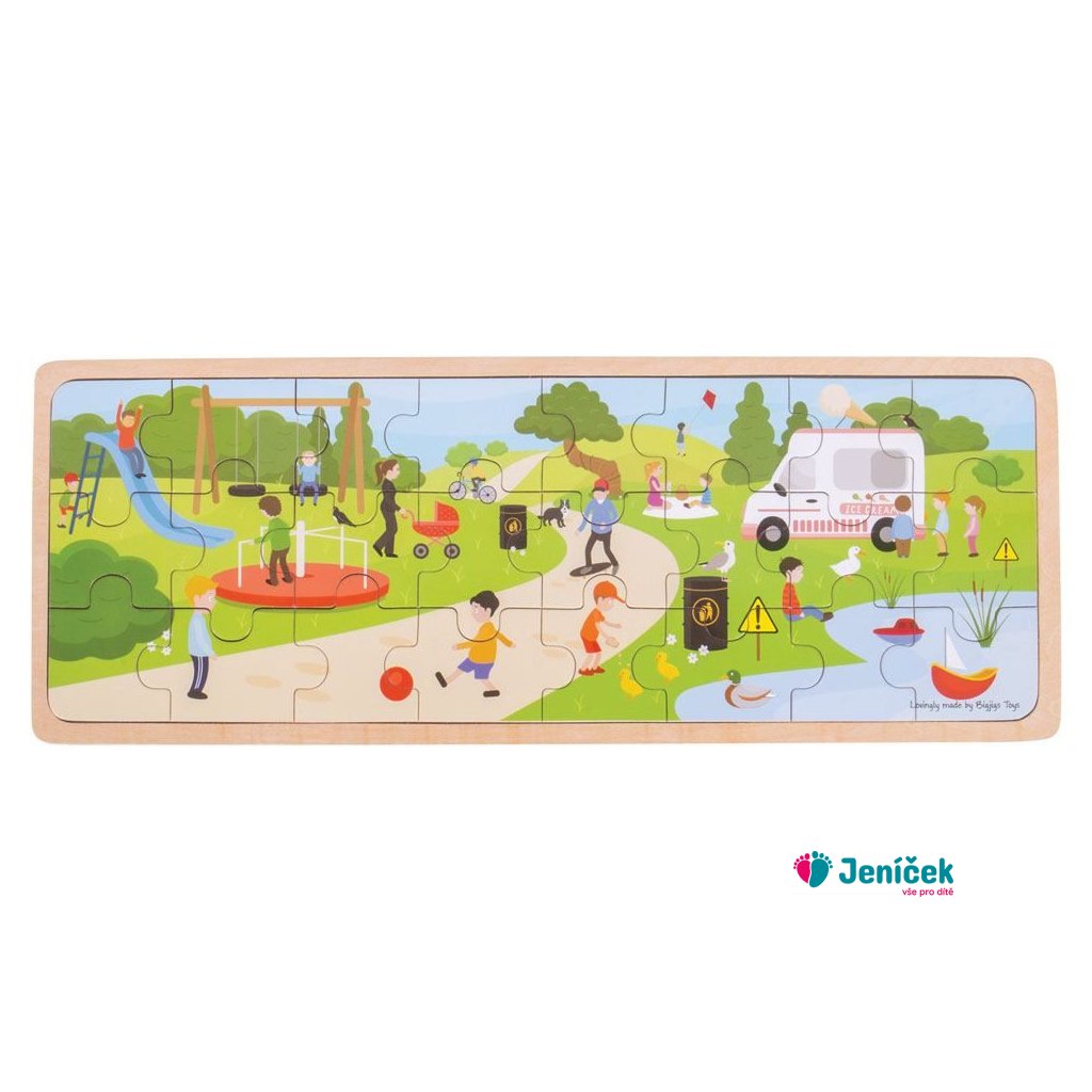 Dřevěné puzzle s 24 dílky s ilustrací pomůže rozvinout představivost a zlepšit logické myšlení.