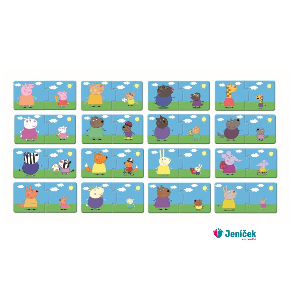 Sada jednoduchých dvojdílných skládaček s obrázky prasátka Peppy a jeho přátel je určena pro děti, které s puzzle začínají. Velké a pevné dílky usnadňují dětem skládání. Doporučený věk od 18 měsíců.