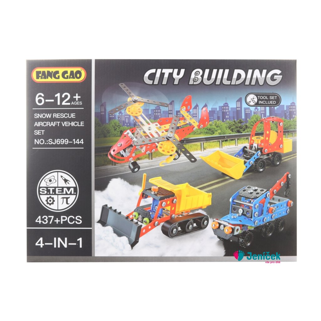 Šroubovací stavebnice obsahuje 4 modely dopravních prostředků a šroubovák s klíčem. Rozměr balení cca 43 x 32 x 6 cm. Věk 6+