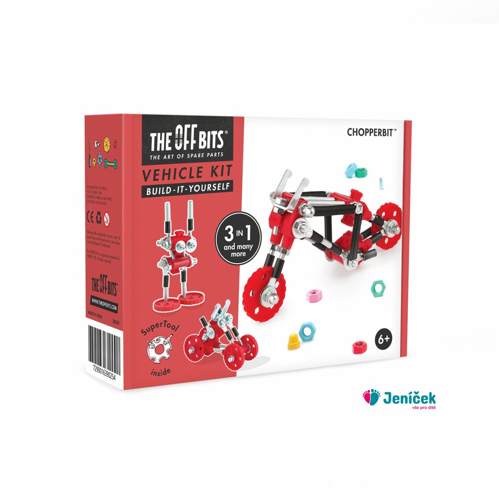Cestujte po otevřené silnici! ChopperBit je motocykl pro vašeho robota OffBits. Díky sortimentu koleček a chytrých spojů může váš robot čelit větru stylově. Popusťte uzdu své fantazii. Tato sada umožňuje vytvoření tří modelů s dalšími nekonečnými možnostmi pro vaše vlastní kreativní nápady. Jedná se o hračku, která pomáhá mladým lidem růst v oblastech vědy, technologie, inženýrství, umění a matematiky. Hračky OffBits také podporují rozvoj jemné motoriky, prostorové představivosti, řešení problémů a nápadité hry. Co můžete postavit:ChopperBit, robota TechBit, BumperBit plus nekonečné množství jedinečných výtvorů, které můžete postavit pomocí své fantazie. Máte kolem sebe karton, šroubky nebo jiné zábavné materiály? Vylepšujte s předměty každodenní potřeby a vytvořte také své vlastní jedinečné vynálezy. Hlavní vlastnosti: obsahuje nářadí pro sestavení stavebnicekompatibilnost s každodenními předmětyrozvoj kreativity, jemné motoriky i logického myšlenívhodné od šesti let3 v 1 Ilustrační foto balení:Doplňkové parametry