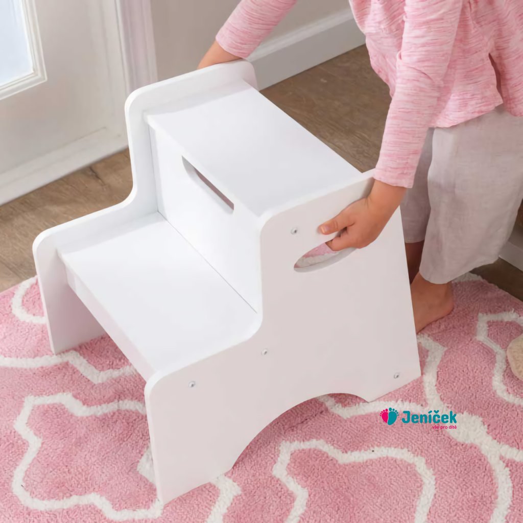 Dva stupínky k samostatnosti! Praktická dvoustupňová stolička, která nebojácným dětem umožní dosáhnout na vyvýšená místa a zároveň poslouží k sezení. Nabízí robustní konstrukci se zaoblenými hranami a odolnou povrchovou úpravou. Výrobek vyžaduje montáž, dodáváno s detailním návodem k sestavení. Hlavní vlastnosti:výška 35 cmsnadná manipulaceodolné provedení