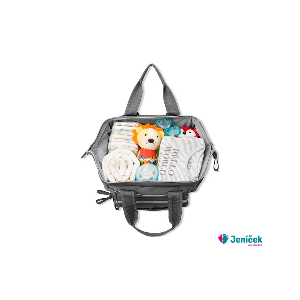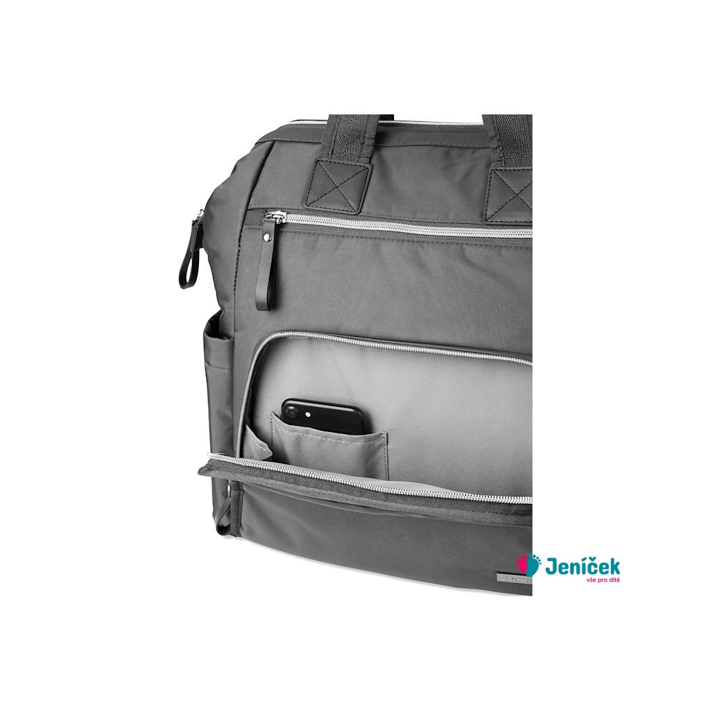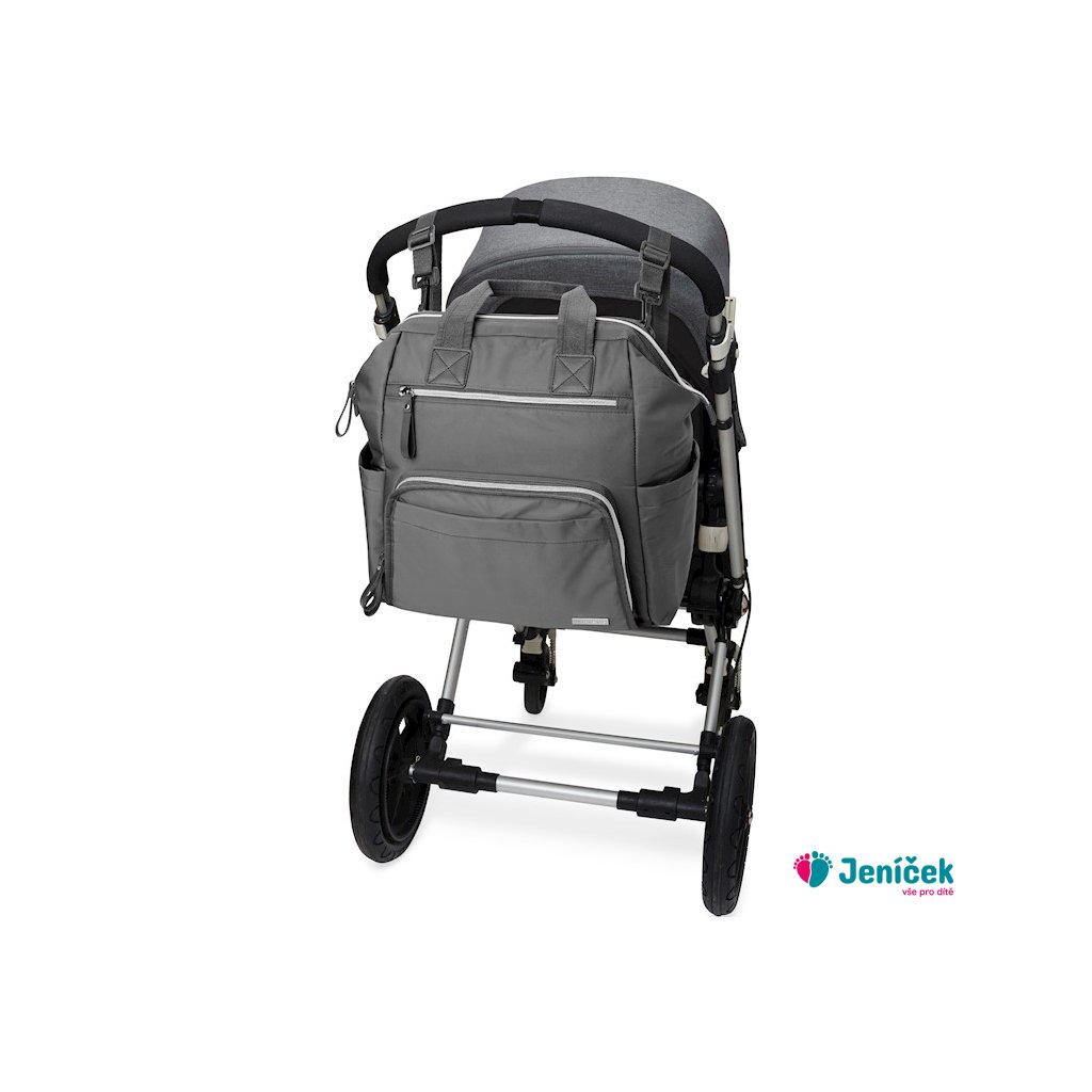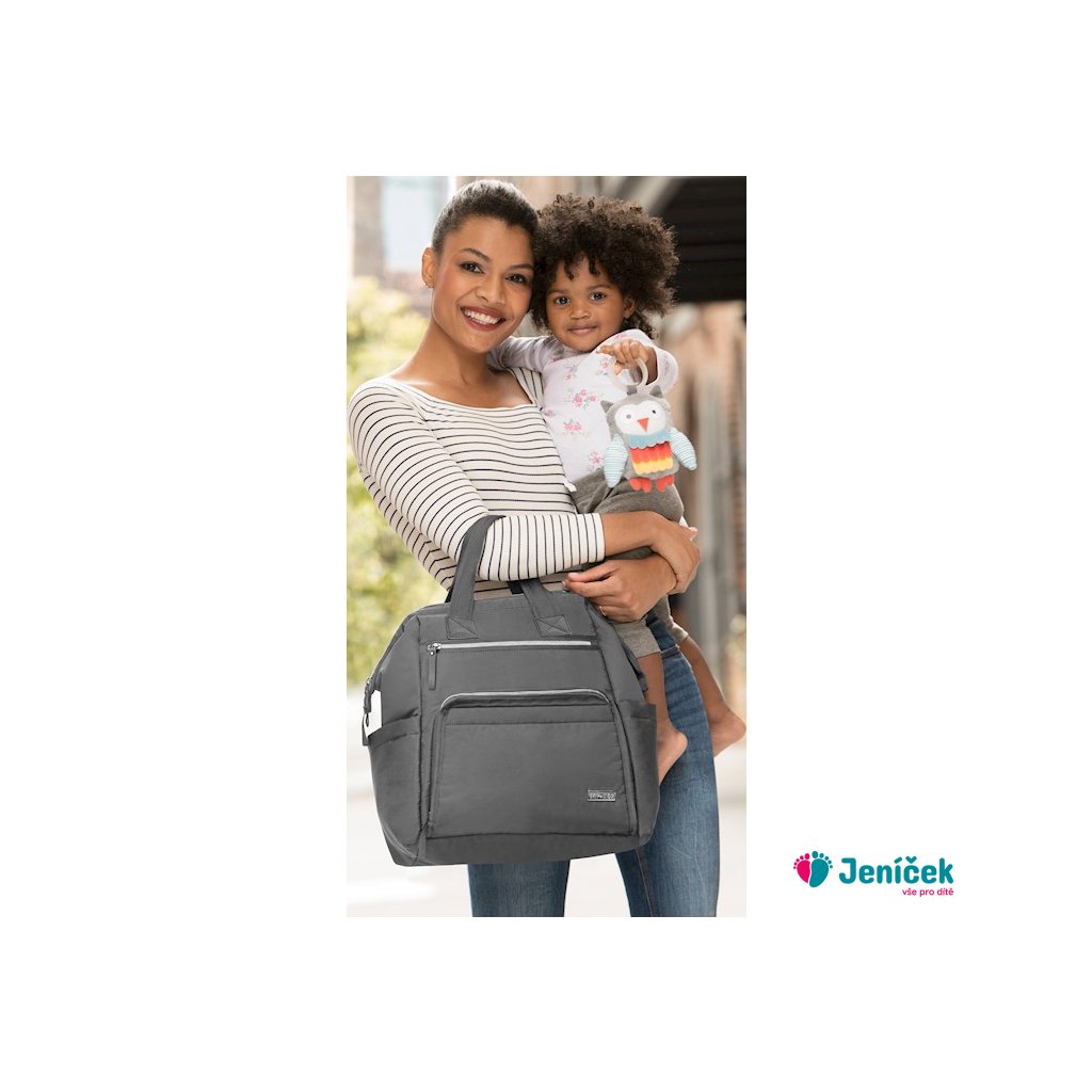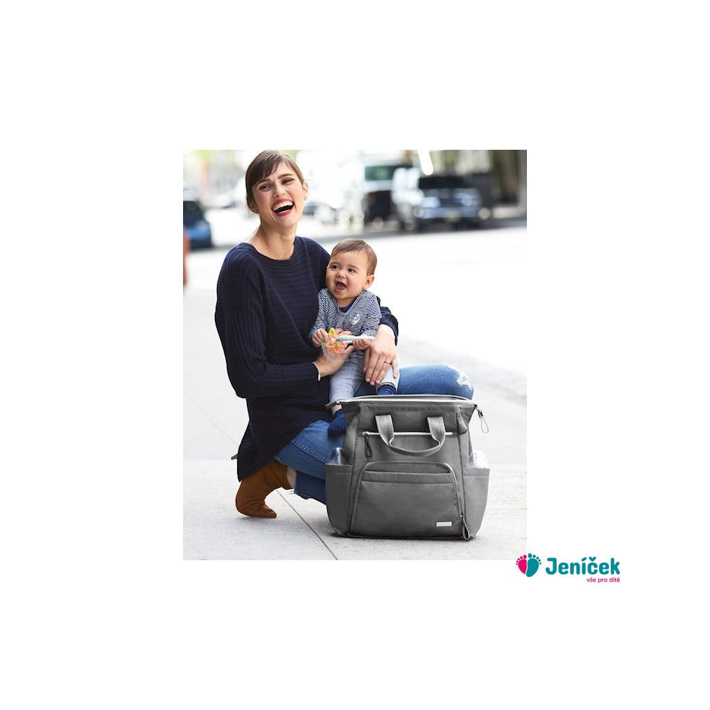 Taška nabízí velkou hlavní přihrádku s bezpečným zapínáním na zip a množství kapes pro věci jako je telefon, láhev na vodu a klíče. Snadno uchopitelné dvojité horní rukojeti a nastavitelné popruhy, které umožní tašku použít jako batoh, zajistí pro maminky volné ruky, což je k nezaplacení.