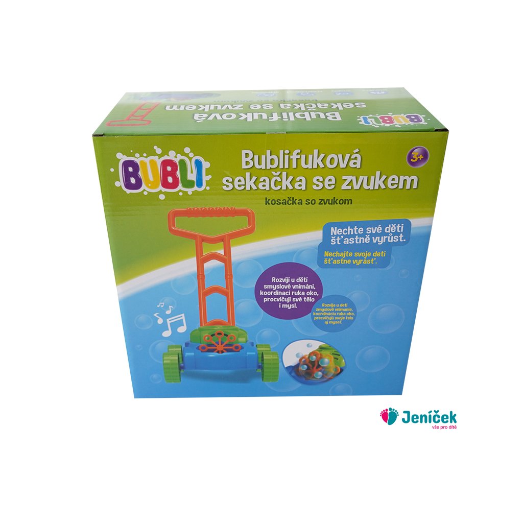 Bublifuková sekačka, která chrlí bubliny. Při jízdě hraje melodii. Záplava bublin bez námahy.