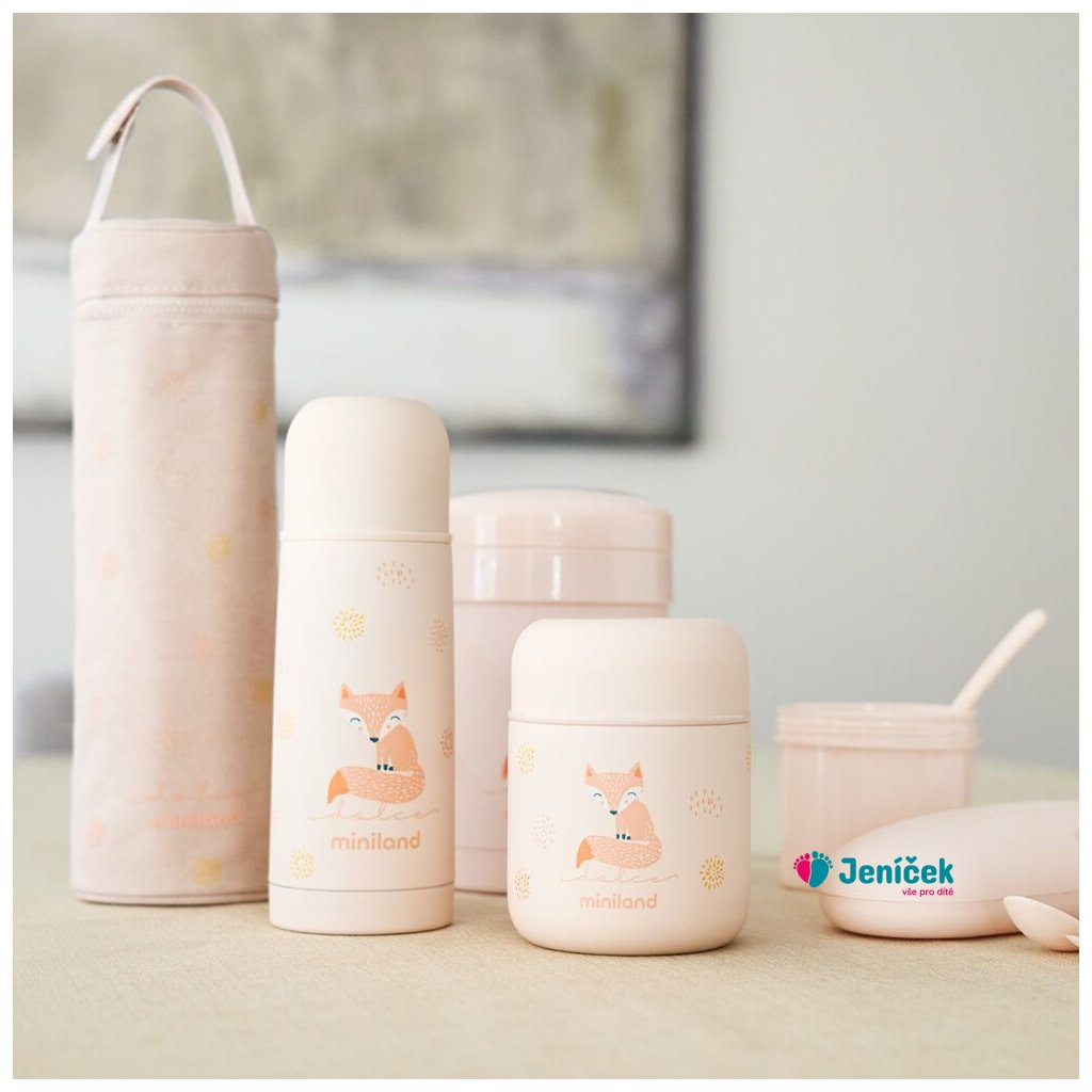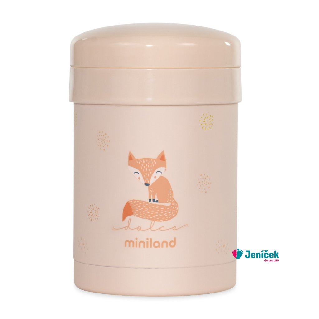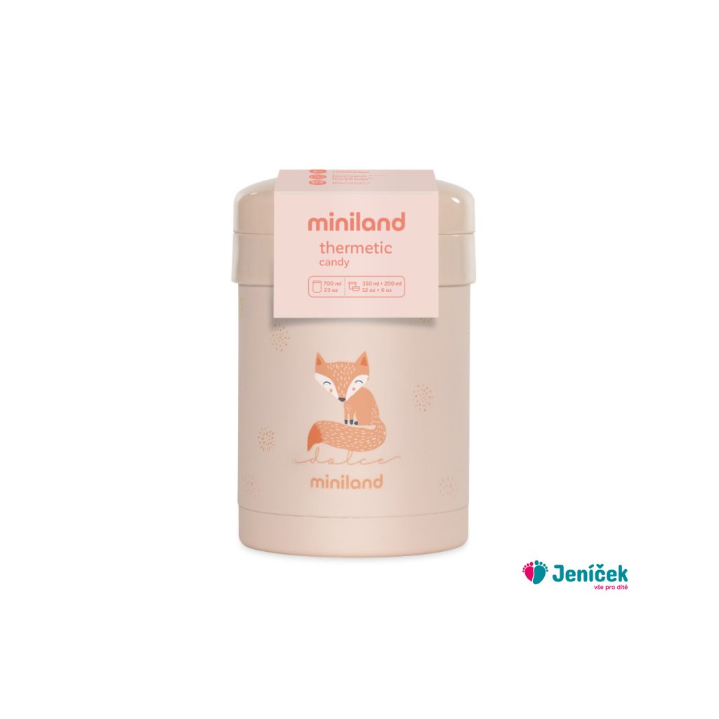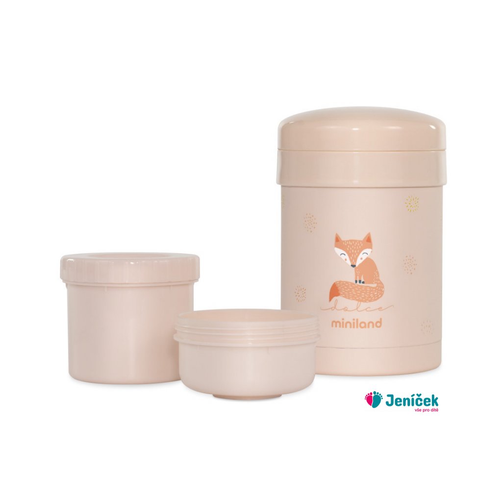 Vakuová termoska Miniland je vyrobena z vysoce kvalitní dvoustěnné oceli a díky tomu udrží několik hodin požadovanou teplotu dětského příkrmu. Dva hermeticky uzavíratelné kelímky o objemu 200ml a 350ml umožňují do termosky uložit odděleně dva různé příkrmy. Kelímky je možné použít i pro ohřívání příkrmu v mikrovlnné troubě. Celkový objem termosky je 700 ml. Neobsahuje BPA.