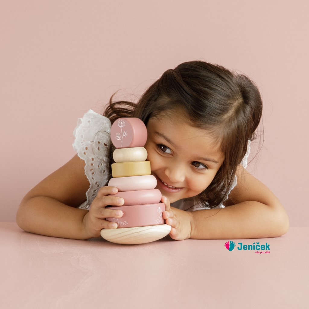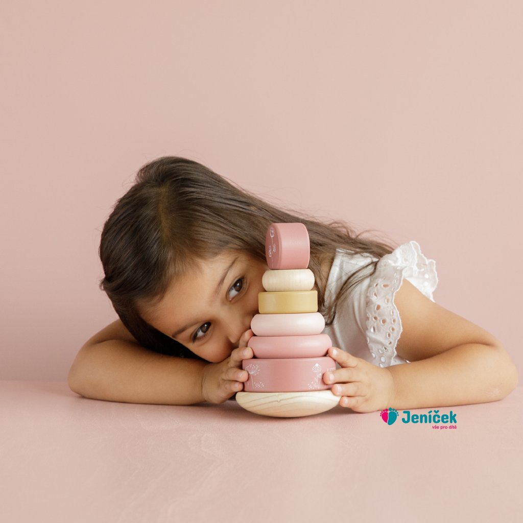 Hravé dřevěné nasazovací kroužky pro děti jsou navrženy tak, aby rozvíjely jejich koordinaci rukou a očí zábavnou a praktickou hrou. Děti se snaží umístit dřevěné kroužky ve správném pořadí a vytvořit z nich pyramidu. To je docela výzva, protože pyramida padá sem a tam! Rozměry: 10 x 10 x 19 cm Vhodné pro děti od 12 měsíců.