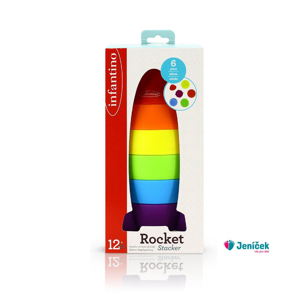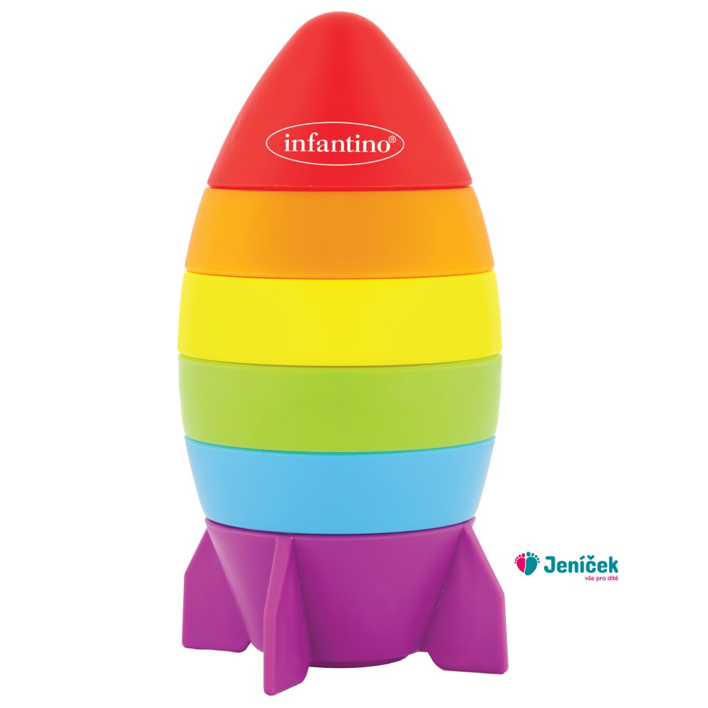 Pestrobarevná 6-dílná skládačka v podobě rakety poskytne vašemu dítěti skvělou zábavu a variabilní hru. Hračka zároveň pomáhá rozvíjet jednotlivé smysly, jemnou motoriku, koncentraci i logické myšlení dítěte. Vyrobeno z příjemného, kvalitního plastu. Rozměry složené rakety: 20 x 10 x 10 cm Vhodné pro děti od 12 měsíců.