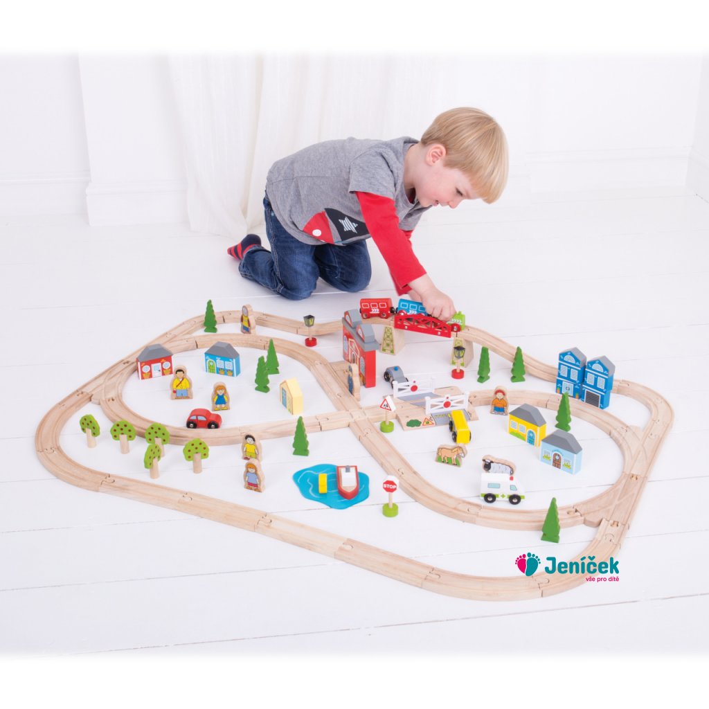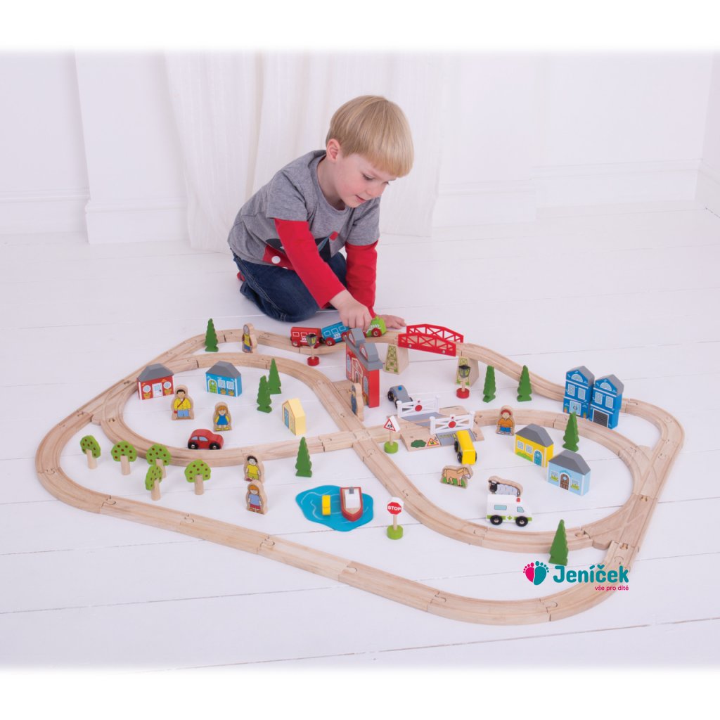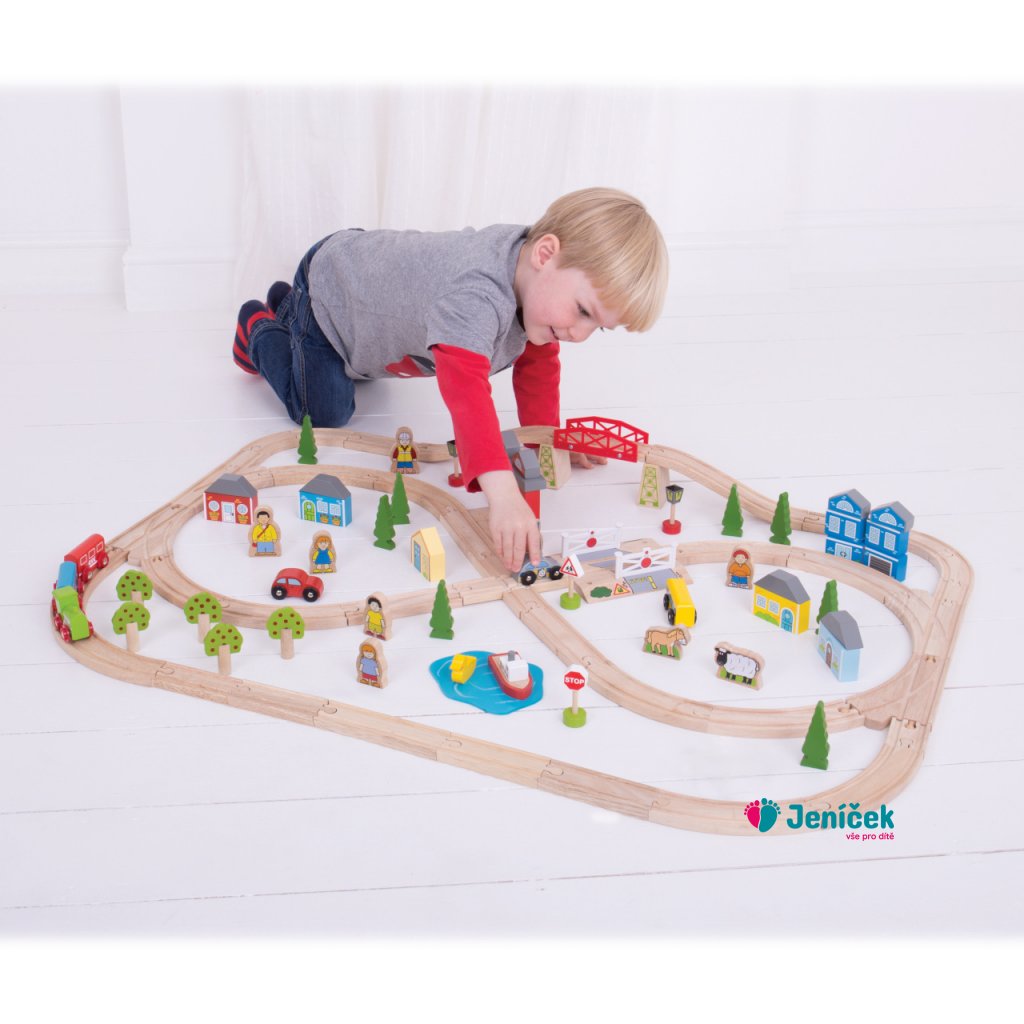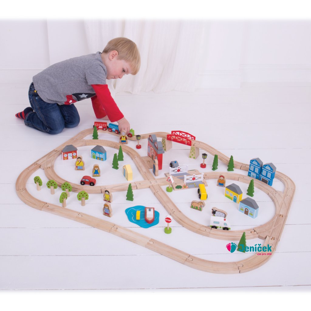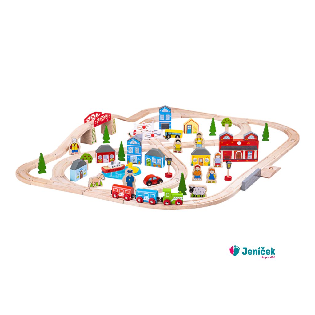 Bigjigs Rail Dřevěná vláčkodráha město a vesnice 91 dílů