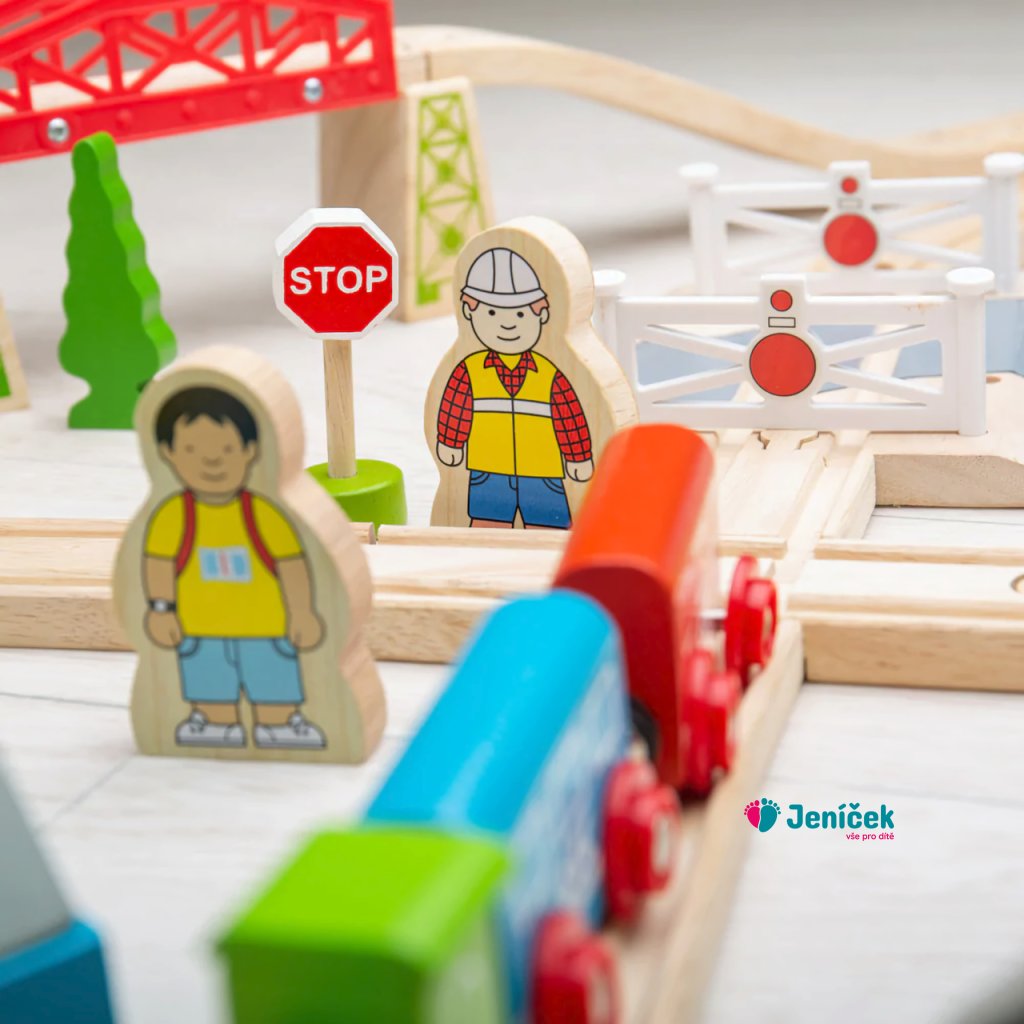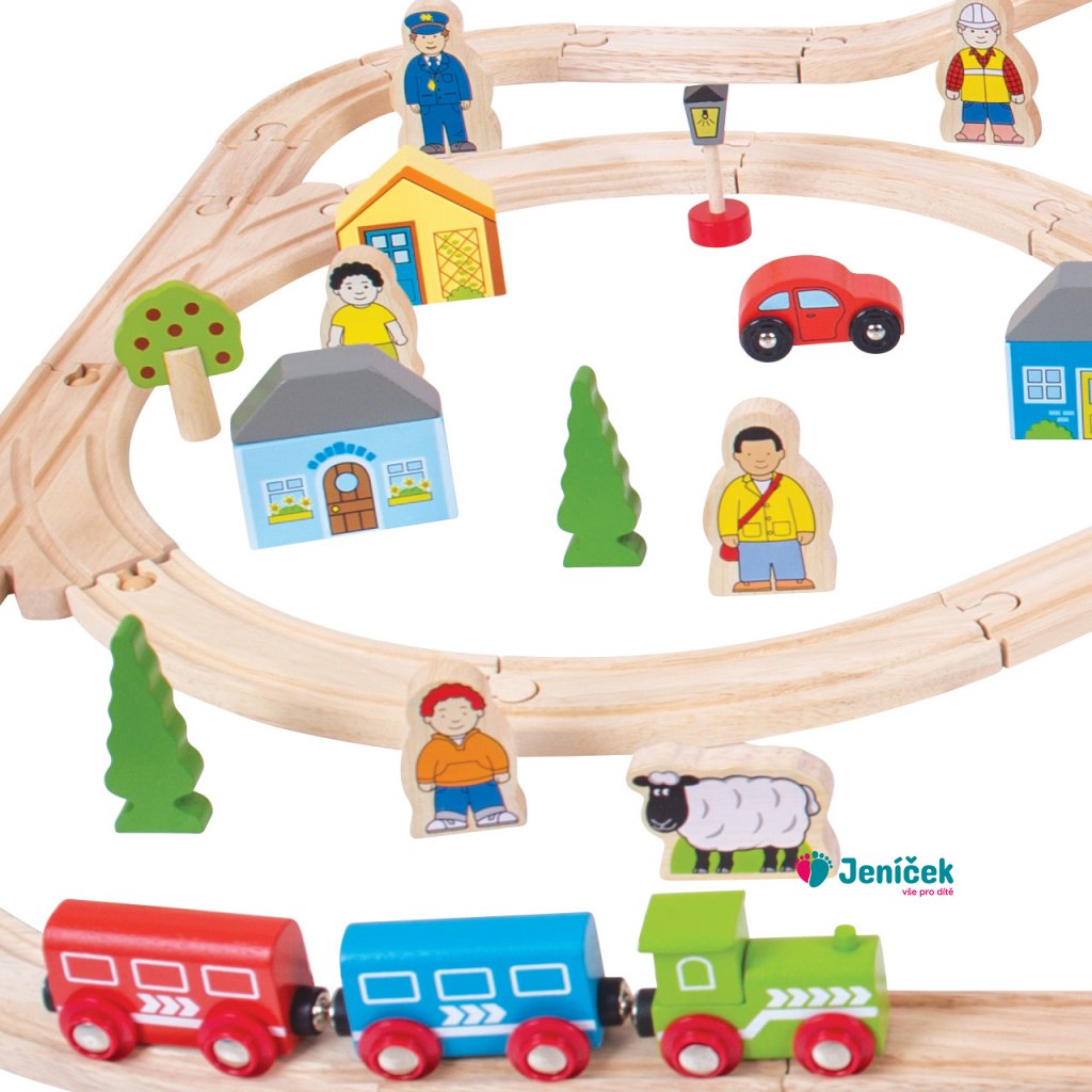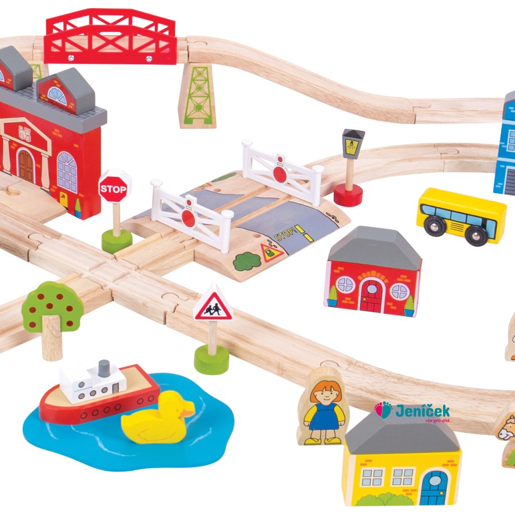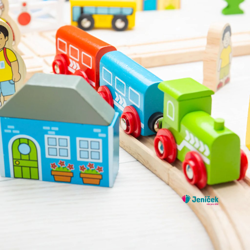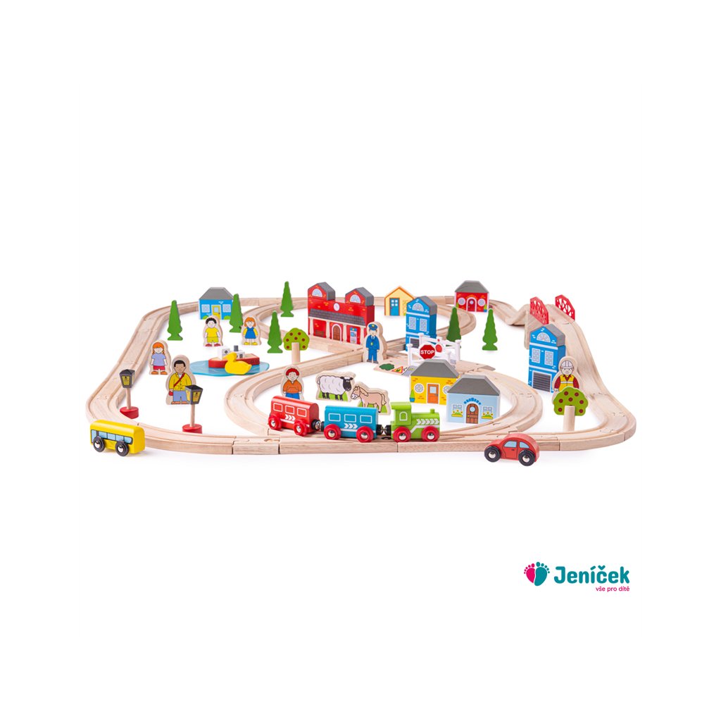 Bigjigs Rail Dřevěná vláčkodráha město a vesnice 91 dílů