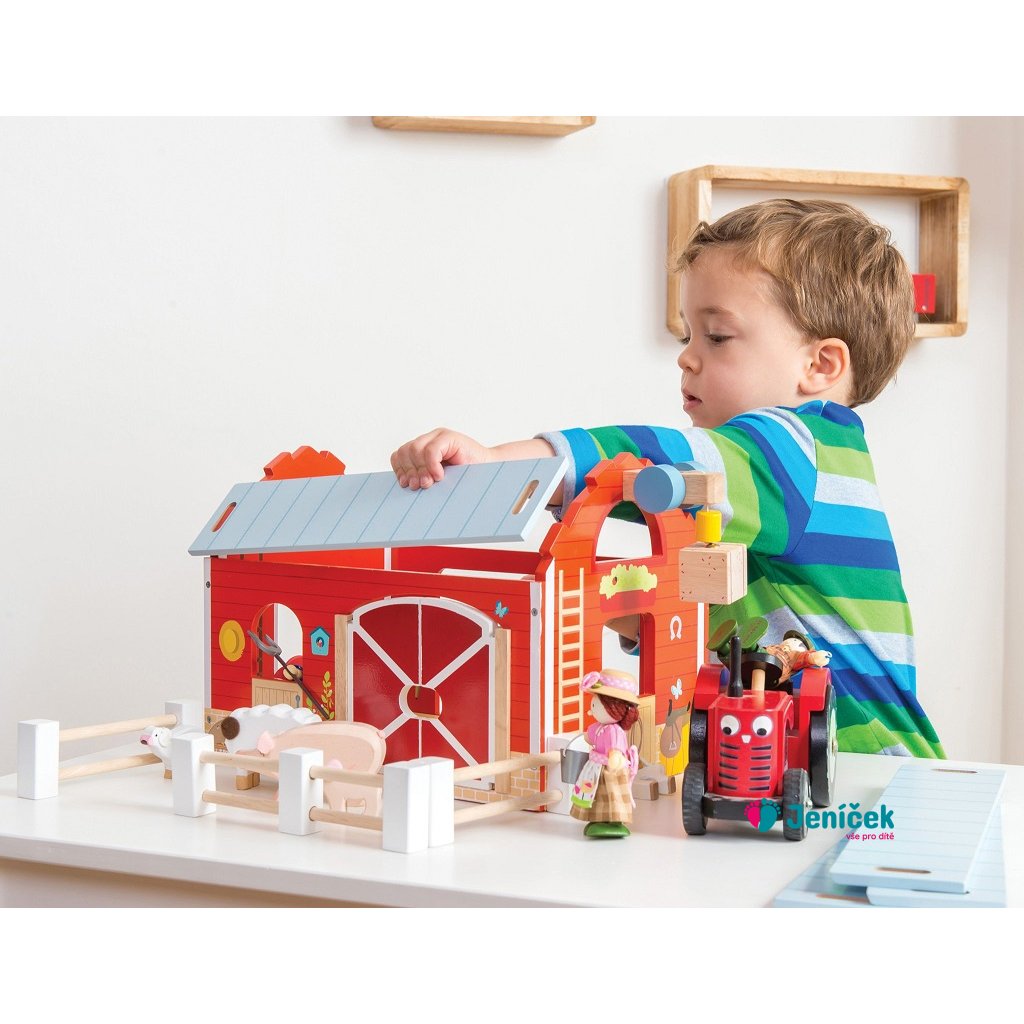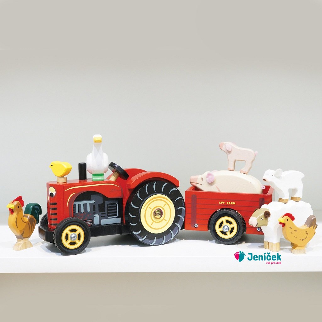 Máte farmu, ale chybí vám traktor? Co třeba tento leskle červený? Traktor má pogumovaná kolečka a také oddělitelný přívěs. Hlavní vlastnosti: Červený dřevěný traktor, který se velikostně hodí k figurkám zvířat a postaviček z farmyKompatibilní s výrobky z kolekce farmy od Le Toy VanPoutavá hračka rozproudí kreativitu dětíInteraktivní hračka pomáhá s rozvojem představivosti, řeči a sociálních dovednostíVyrobeno eticky z udržitelného dřevaMalováno netoxickými barvami, testováno dle nejpřísnějších standardů Kolekce farmy & zvířátkaTato interaktivní a dřevěná kolkce podporuje děti v zapojení představivosti, ať si vytvoří svou vlastní farmu! Každý produkt je krásně ilustrován, vytváří tak realistický zážítek.